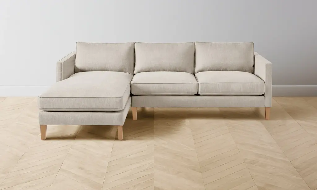 The Sullivan Sectional - Performance Linen Weave Flour - Chaise Sectional / Chaise Right: 119" Wide / Pecan Maple
