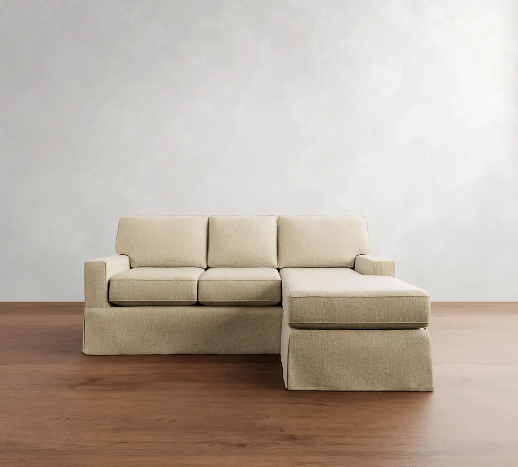 The Sullivan Sectional - Performance Linen Weave Prairie - Chaise Sectional / Chaise Left: 119" Wide / Pecan Maple