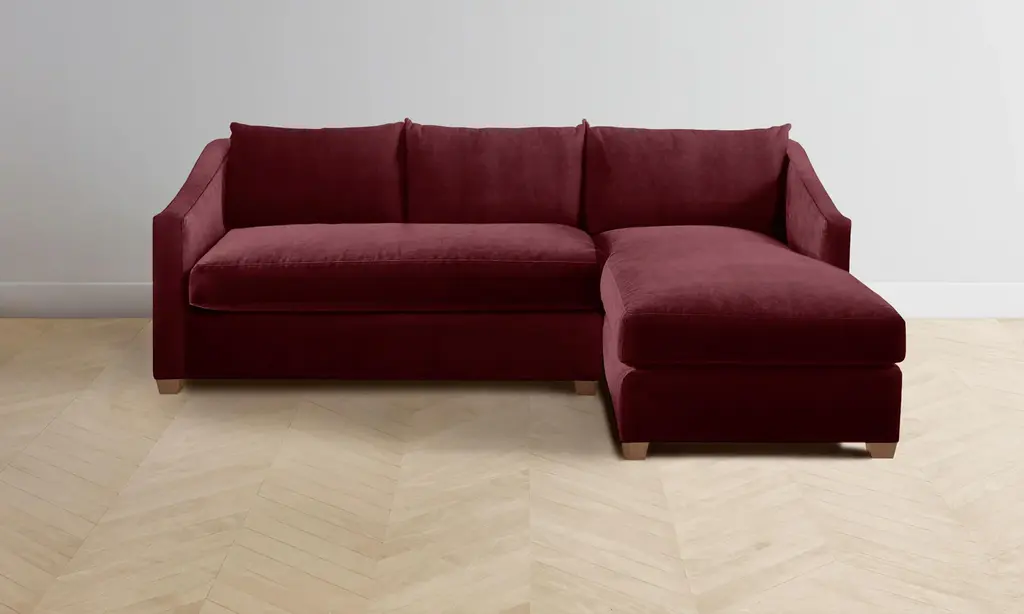 The Sullivan Sectional - Performance Velvet Merlot - Chaise Sectional / Chaise Left: 130" Wide / Pecan Maple