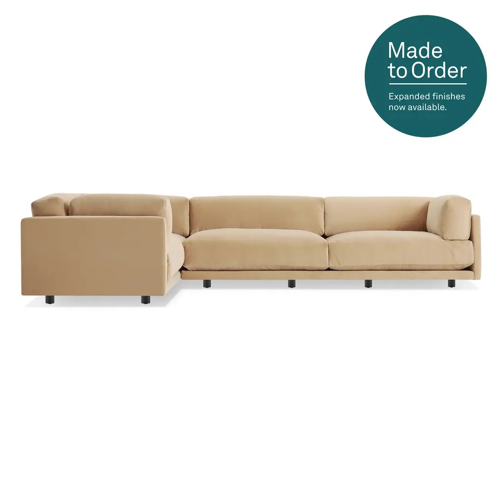 With bold proportions and a low-lying silhouette, the Varick Sectional makes a contemporary statement. Its generous arms and deep seat envelop the body, while impeccable upholstery offers a sleek finish. Handcrafted in North Carolina.
