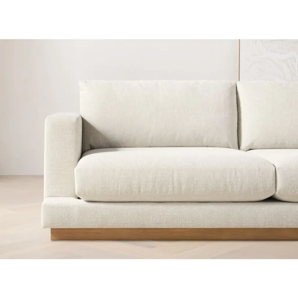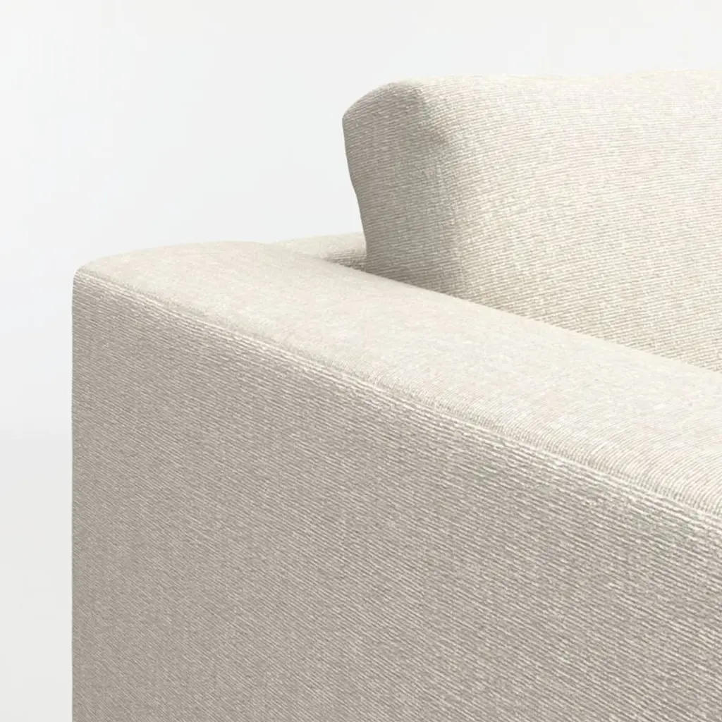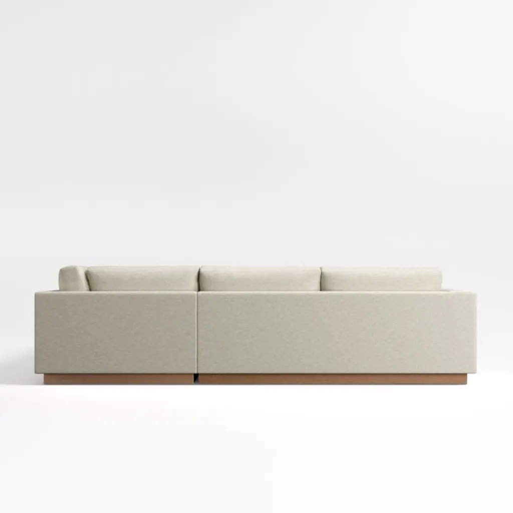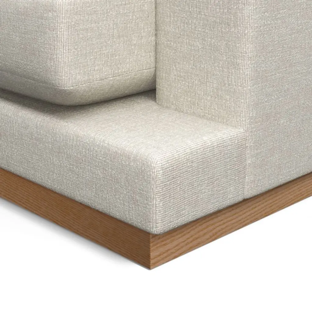 While you sink into the laid-back comfort of our Tidal sectional, enjoy the feel-good vibes of knowing that the sofa's upholstery includes yarn made from recycled ocean plastic. The durable, easy-care fabric indulges with a soft micro-chenille weave that perfectly complements the deeply cushioned seat and pillow backs that provide just the right amount of recline. Combining a corner and left- and right-arm sofas, the L-shaped sectional features set-back arms and exposed seat decks that create a stepped look with an ash veneer plinth base that lets the sofa float in a room. Though Tidal's stocked upholstery contains a percentage of upcycled ocean plastic, it has a very soft and inviting hand that begs to be touched.