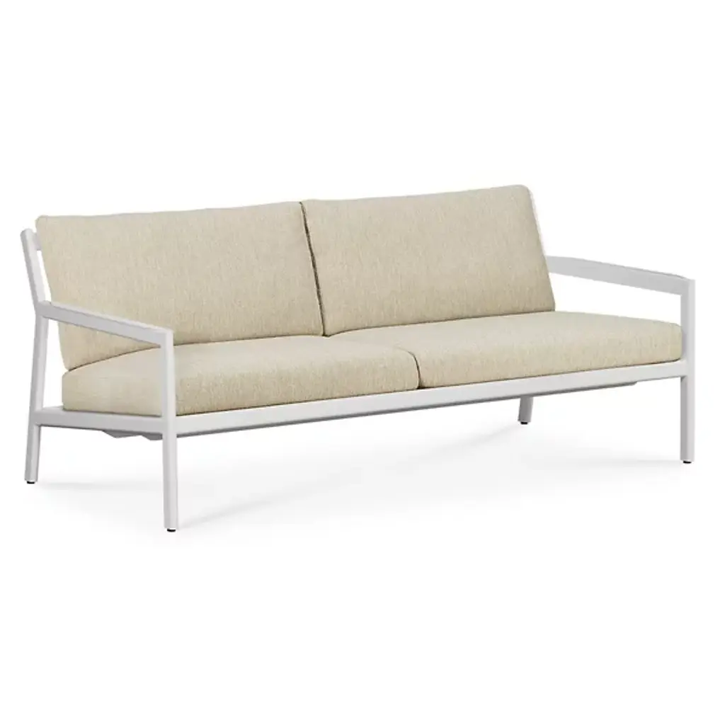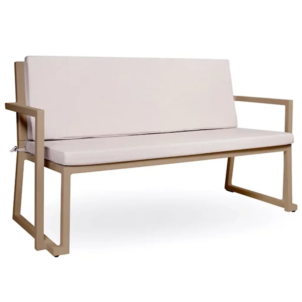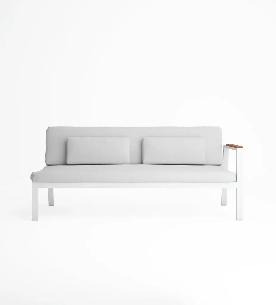 Timeless is the outdoor furniture collection inspired by the rational architectural language from the early 20th century, designed by José A. Gandía-Blasco Canales and Borja García. Its design of discreet but characterful forms communicates honesty, without any unnecessary ornament other than its structure. Its various elements are carefully balanced in order to provide maximum comfort. With cushion and pillows; 2 pillows required. Upholstered in Ash Gray vinyl.Cushion dimensions: 73 x 35 x 32 in. Pillow dimensions: 12 x 26 x 6 in.Thermo-lacquered welded aluminium. Teak wood armrest.