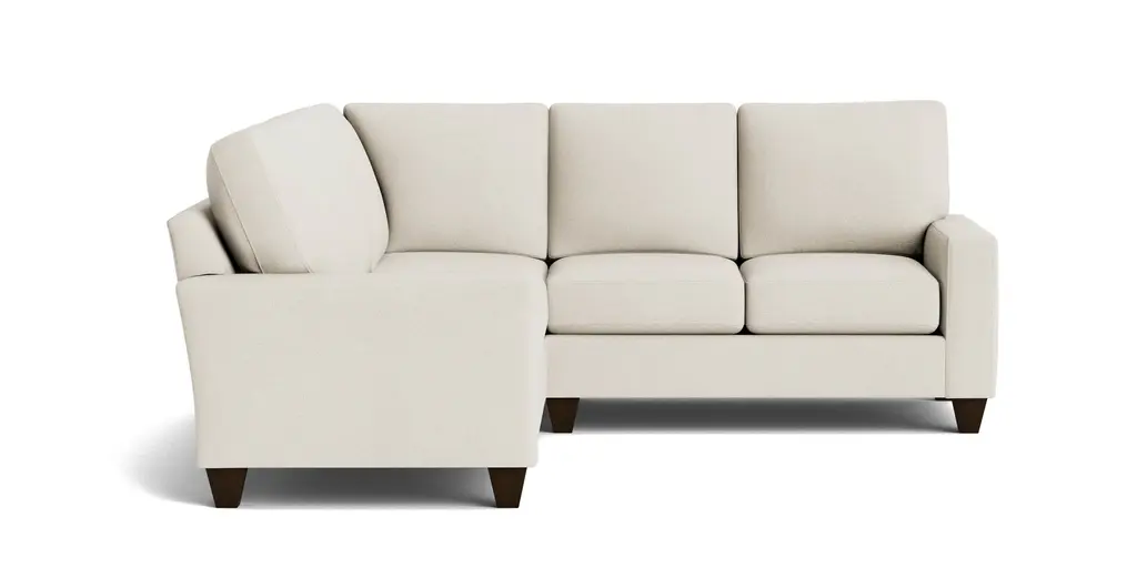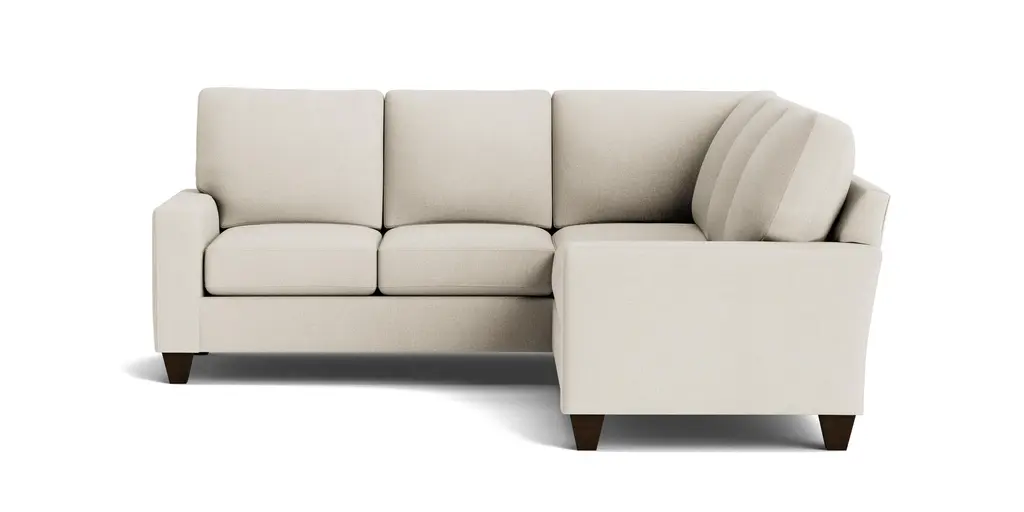 If you prefer a modern yet cozy look, the True Custom Large Track Arm L-Shaped Sofa is designed to seamlessly integrate into your space. The track arm delivers that clean, architectural feel while plush cushions keep things inviting. It's a look that fits effortlessly into every space, from open, airy floor plans to smaller city apartments. Select your preferred Bassett seat cushion comfort, and choose the designer fabric that brings your vision to life. Visit a Bassett Furniture store for even more ways to personalize your sectional, including seat depth, cushion front style, welting, leg sizes, shapes, and finishes. More sectional configurations, back cushion styles, and filling options are also available.