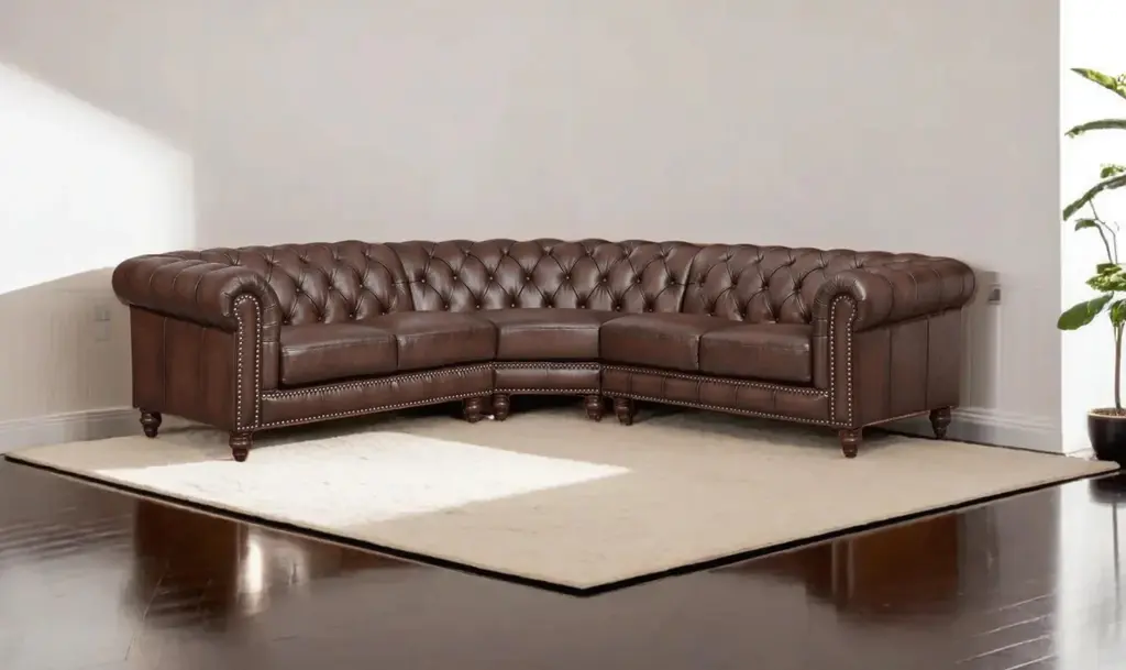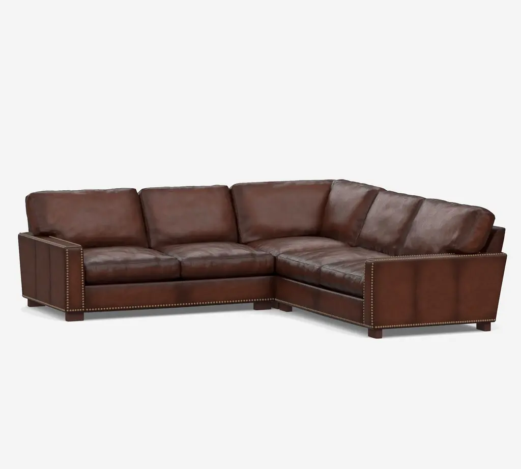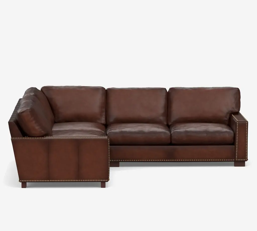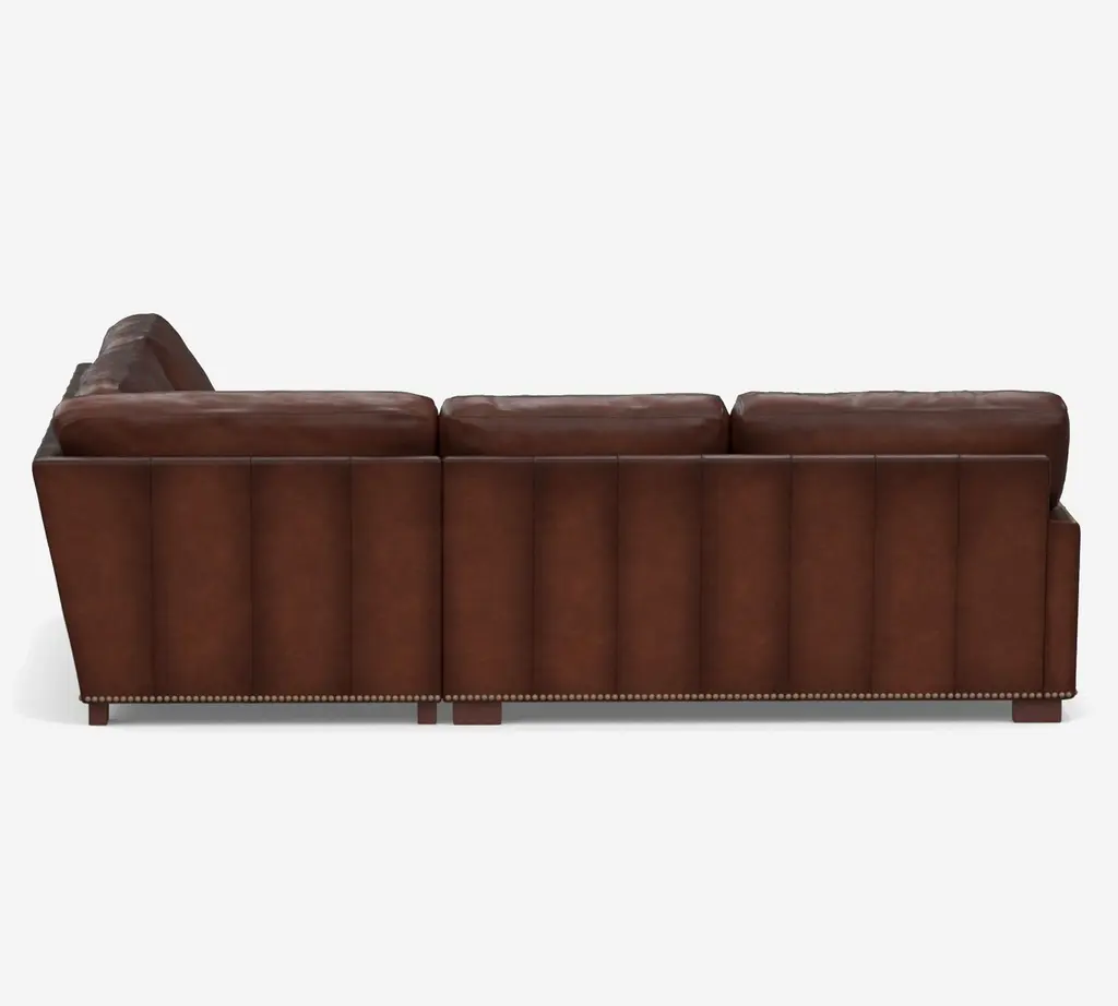 Turner Square Arm Leather 3-Piece L-Sectional Nailheads