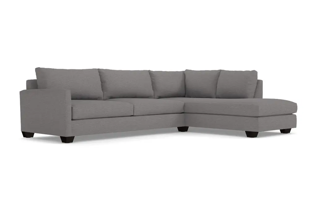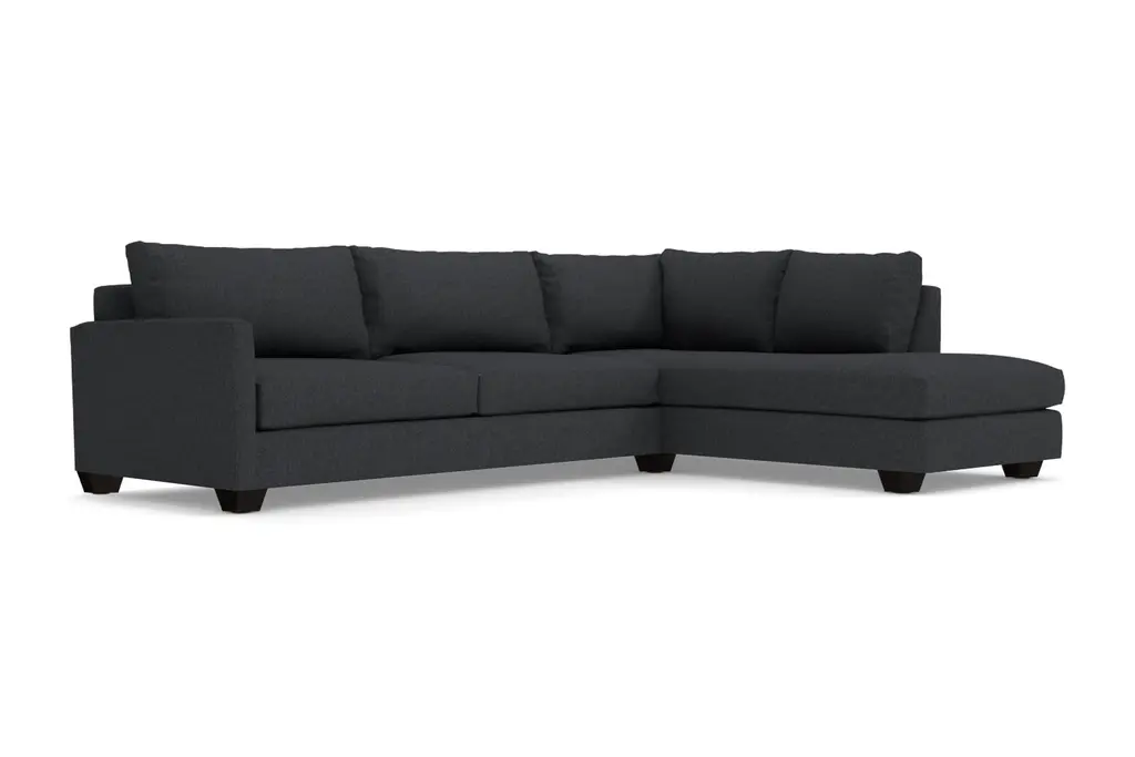 With the Tuxedo's plush, oversized cushions and a relaxing chaise made for lounging about, you'll soon realize that going out is overrated. This two-piece sectional is the ultimate in comfort and with our breathable, easy-to-clean upholstery, it's also low maintenance, so you can spend more time relaxing and less time fussing. Its contemporary style features wooden block legs for a cool aesthetic and its transitional look will make the perfect addition to your living room. You have your choice of nearly 40 colors, so you'll have no problem finding the perfect shade. Our Tuxedo Collection is made right here in the United States and comes with a limited lifetime warranty, so you really can't go wrong. All dressed up and nowhere to go. The Tuxedo Collection was made for staying in. A transitional look that can translate to any style room, dress it up with pillows or throws to achieve your own look!