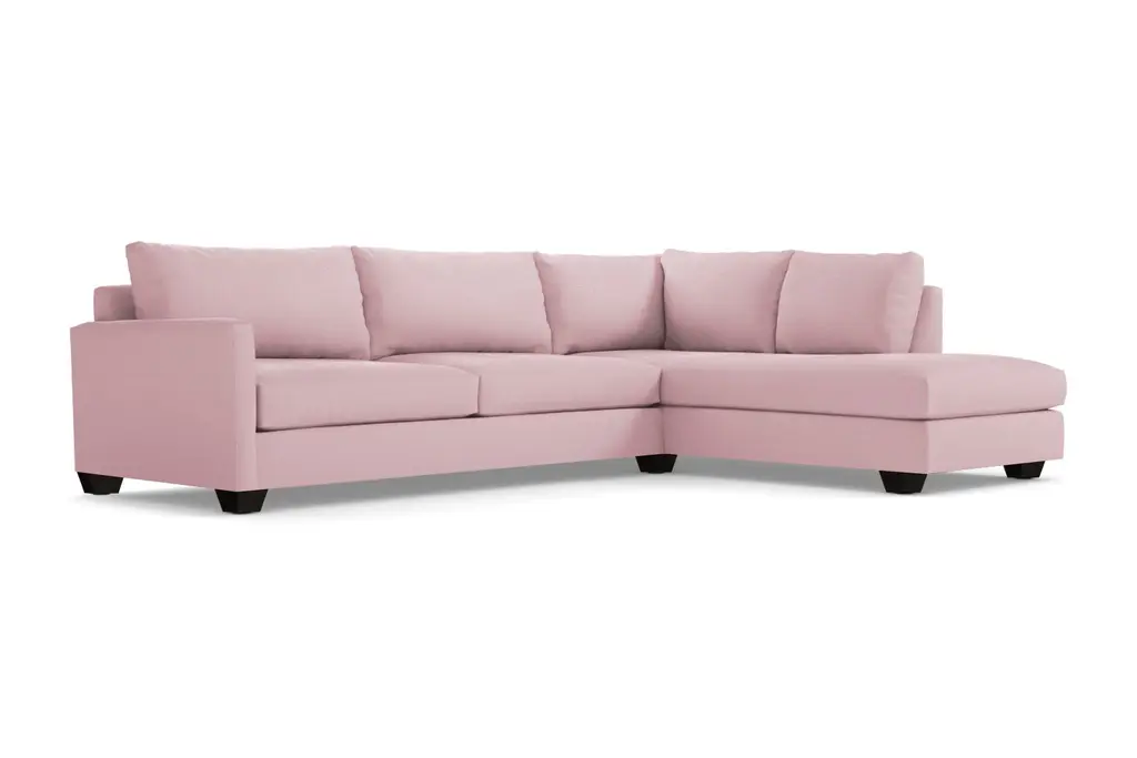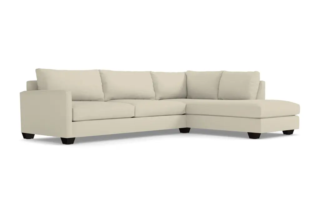 With the Tuxedo's plush, oversized cushions and a relaxing chaise made for lounging about, you'll soon realize that going out is overrated. This two-piece sectional is the ultimate in comfort and with our breathable, easy-to-clean upholstery, it's also low maintenance, so you can spend more time relaxing and less time fussing. Its contemporary style features wooden block legs for a cool aesthetic and its transitional look will make the perfect addition to your living room. You have your choice of nearly 40 colors, so you'll have no problem finding the perfect shade. Our Tuxedo Collection is made right here in the United States and comes with a limited lifetime warranty, so you really can't go wrong. All dressed up and nowhere to go. The Tuxedo Collection was made for staying in. A transitional look that can translate to any style room, dress it up with pillows or throws to achieve your own look!