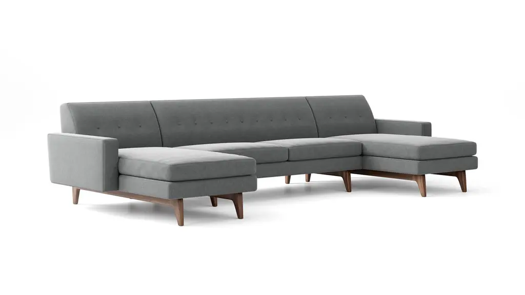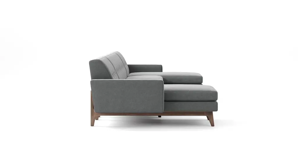 DESIGN Simply modern and slightly classic, the Tyler collection is a versatile choice for just about any space. This design has clean lines, low profile wrap-around side, tufted buttons, and an eye-catching exposed leg detail. Handcrafted in the United States. FEATURES Solid Foundation: Our frames are constructed from precision-cut, FSC-certified engineered wood for unmatched strength and stability, featuring reinforced, interlocking joinery for added durability. Customizable Cushion Options: Choose from standard or down alternative cushions. Standard cushions offer our most supportive sit and a sleek, tailored look that requires minimal fluffing. These cushions feature high-quality, high-resiliency CertiPUR-US® foam core seats wrapped in premium fiber with a high-density foam tight-back cushion. Down alternative cushions deliver our most relaxed yet supportive sit, with a more casual look that requires moderate fluffing. These cushions feature high-quality, high-resiliency CertiPUR-US® foam core seats wrapped in plush down-alternative fiber with a high-density foam tight-back cushion. CertiPur-US® foam is held to the highest standards of product safety and durability, so you can rest easy. Supportive Webbing Suspension: Designed to maximize comfort, our premium webbing system provides a resilient foundation. Customizable Upholstery: Choose from a vast selection of durable premium and performance fabrics and genuine Italian leather to personalize your Tyler Sectional's look.