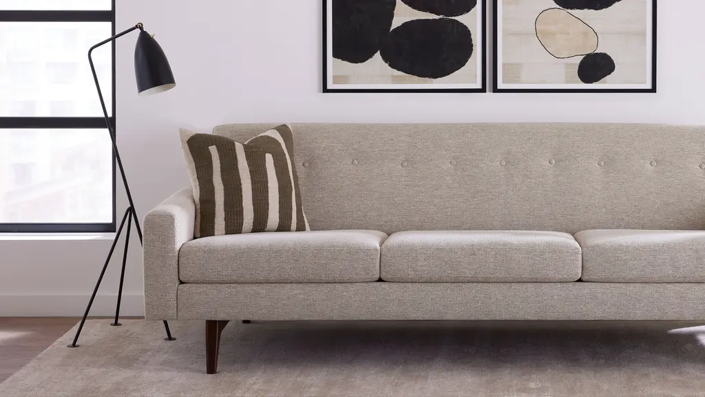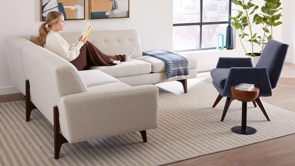 DESIGN Simply modern and slightly classic, the Tyler collection is a versatile choice for just about any space. This design has clean lines, low profile wrap-around side, tufted buttons, and an eye-catching exposed leg detail. Handcrafted in the United States. FEATURES Solid Foundation: Our frames are constructed from precision-cut, FSC-certified engineered wood for unmatched strength and stability, featuring reinforced, interlocking joinery for added durability. Customizable Cushion Options: Choose from standard or down alternative cushions. Standard cushions offer our most supportive sit and a sleek, tailored look that requires minimal fluffing. These cushions feature high-quality, high-resiliency CertiPUR-US® foam core seats wrapped in premium fiber with a high-density foam tight-back cushion. Down alternative cushions deliver our most relaxed yet supportive sit, with a more casual look that requires moderate fluffing. These cushions feature high-quality, high-resiliency CertiPUR-US® foam core seats wrapped in plush down-alternative fiber with a high-density foam tight-back cushion. CertiPur-US® foam is held to the highest standards of product safety and durability, so you can rest easy. Supportive Webbing Suspension: Designed to maximize comfort, our premium webbing system provides a resilient foundation. Customizable Upholstery: Choose from a vast selection of durable premium and performance fabrics and genuine Italian leather to personalize your Tyler Sectional's look.