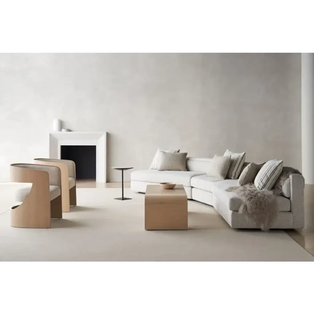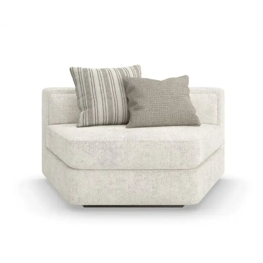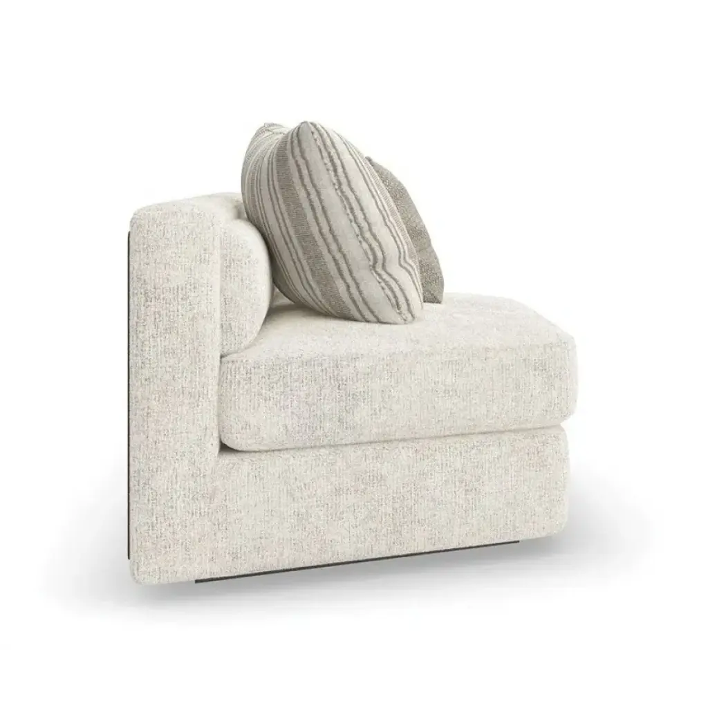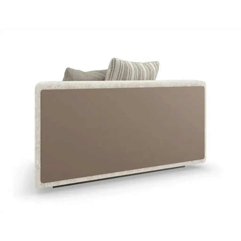 A holistic expression of design integrity, the Unity sectional mixes singular elements: organic tones, contrast, and texture to create a sense of harmony. Clean lines call to mind a modern European style, dressed in a creamy tactile fabric with a contrasting leather panel outback. Introduces a low, lounge-like aesthetic with lumbar cushioning along the back and feather-down toss pillows for added comfort and layering.