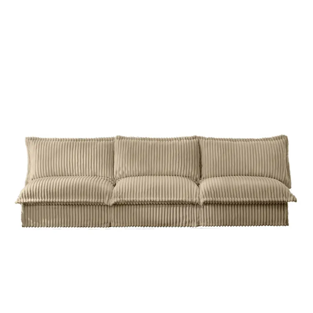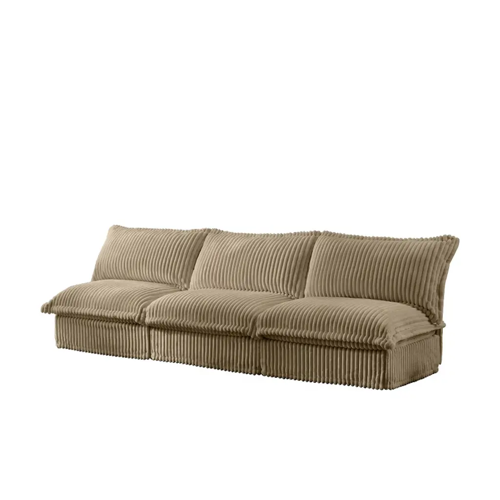 Upholstered Sectional Sofa, Modern 3 Seater Armless Sectional Sofa, Sectional Sofas With Camel Corduroy Fabric And Wood Frame-cuddlewood