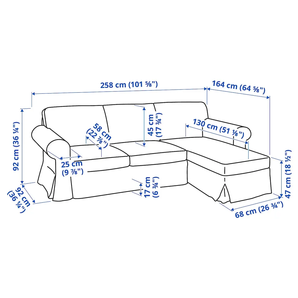 UPPLAND Sofa with chaise - Blekinge white. Enjoy the super comfy UPPLAND sofa with embracing feel and deep seat cushions made of pocket springs, high resilience foam and polyester fibers, adding both firm support and relaxing softness.