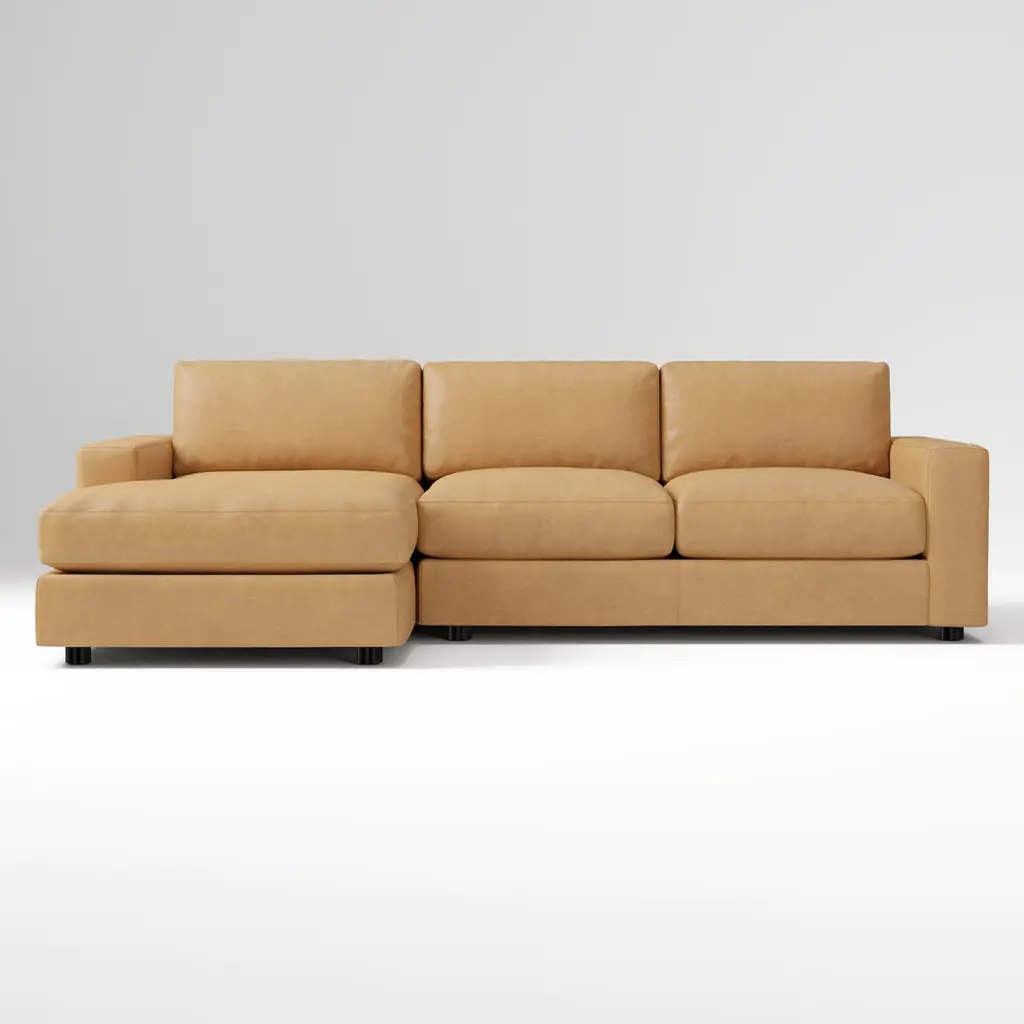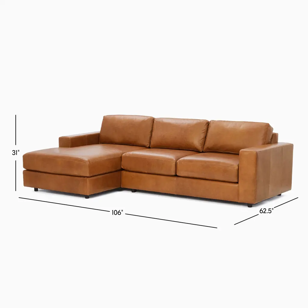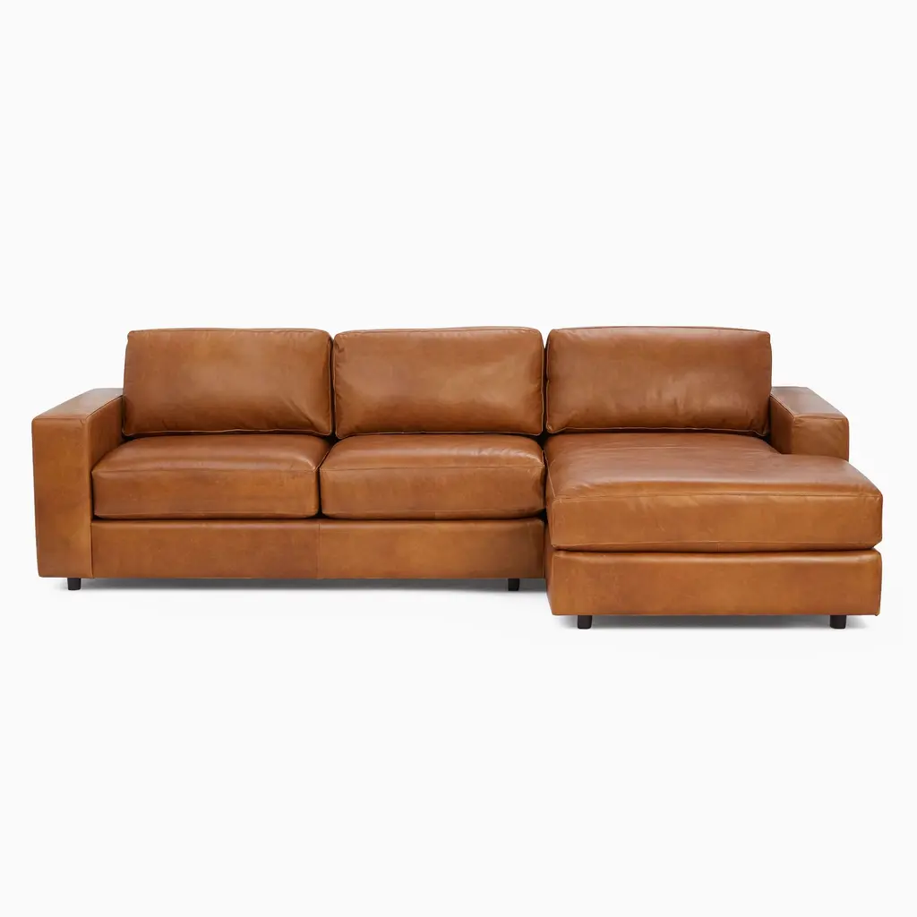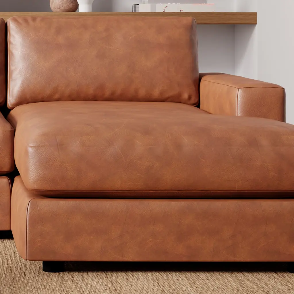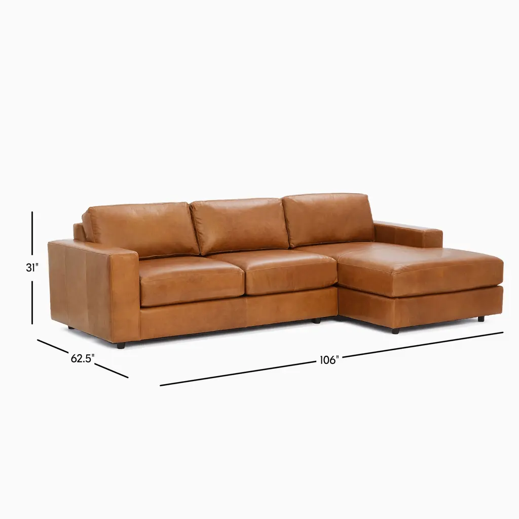 Its simple silhouette makes it an instant classic. Deep seats for sink-right-in comfort. Covered in your choice of beautiful leather. All wood is kiln-dried for added durability.