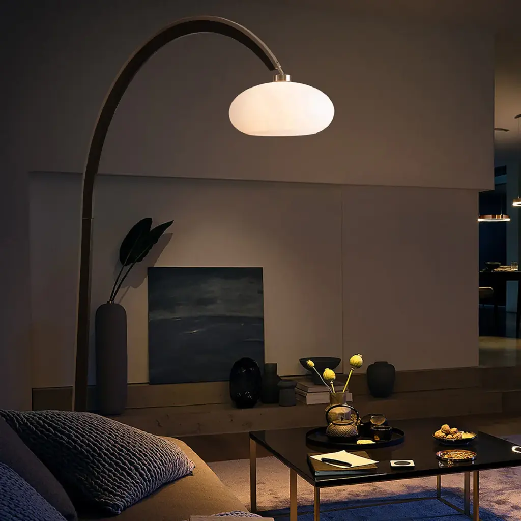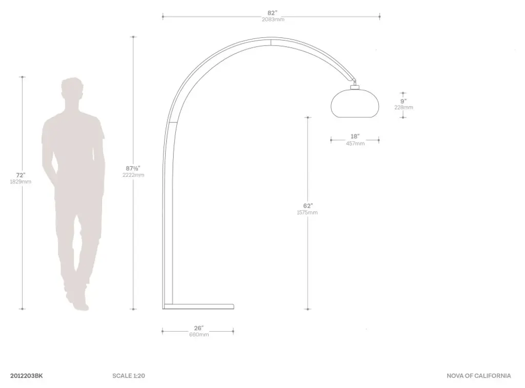 Experience the timeless allure of mid-century design with the Vaulted Arc Floor Lamp, originally crafted by chief lighting designer Peter Morelli in 1968. This iconic piece has been revitalized with modern LED technology in mind, preserving its design essence that currently commands high auction prices. Meticulously fashioned from bentwood and featuring a molded lucite shade, the Vaulted Arc Lamp exudes mid-century charm while seamlessly integrating contemporary efficiency. The convenient dimmer switch, thoughtfully located on the column, empowers you to tailor the light to your precise needs, whether it''s for focused tasks or ambient glow. This lamp provides quality overhead lighting without the need for electricians and is ideal over sectionals and sofas.• Timeless mid-century modern design that has become an iconic design over the last 55 years. • Certificate of Authenticity provided along with certified markings ensuring that you bought an original NOVA of California design.• Designed by Peter Morelli in 1968, this lamp encapsulates the timeless essence of mid-century aesthetics.• Updated with current LED advancements, the lamp seamlessly marries vintage charm with contemporary efficiency.• Crafted from black bentwood & satin nickel finish, the lamp boasts enduring quality and style.• The molded acrylic shade adds a touch of sophistication while diffusing warm, ambient light.• Easily adjust the light to suit any occasion using the dimmer switch thoughtfully positioned on the column.• Unique weighted steel base for elevated styling and a sturdy foundation.• Energy-efficient LED compatible.• Smart switch compatible - effortlessly sync with Amazon Echo, Google Assistant, and Apple Home for easy & automated control.• Contract grade: high quality materials, quality workmanship, built to last a lifetime & designed in Venice Beach, California. • NOVA of California is the oldest light company in North America and has been making original contemporary designs for 100 years. • Sustainability statement: We are committed to minimizing the unwanted impact our business has on the environment. We care for our planet.