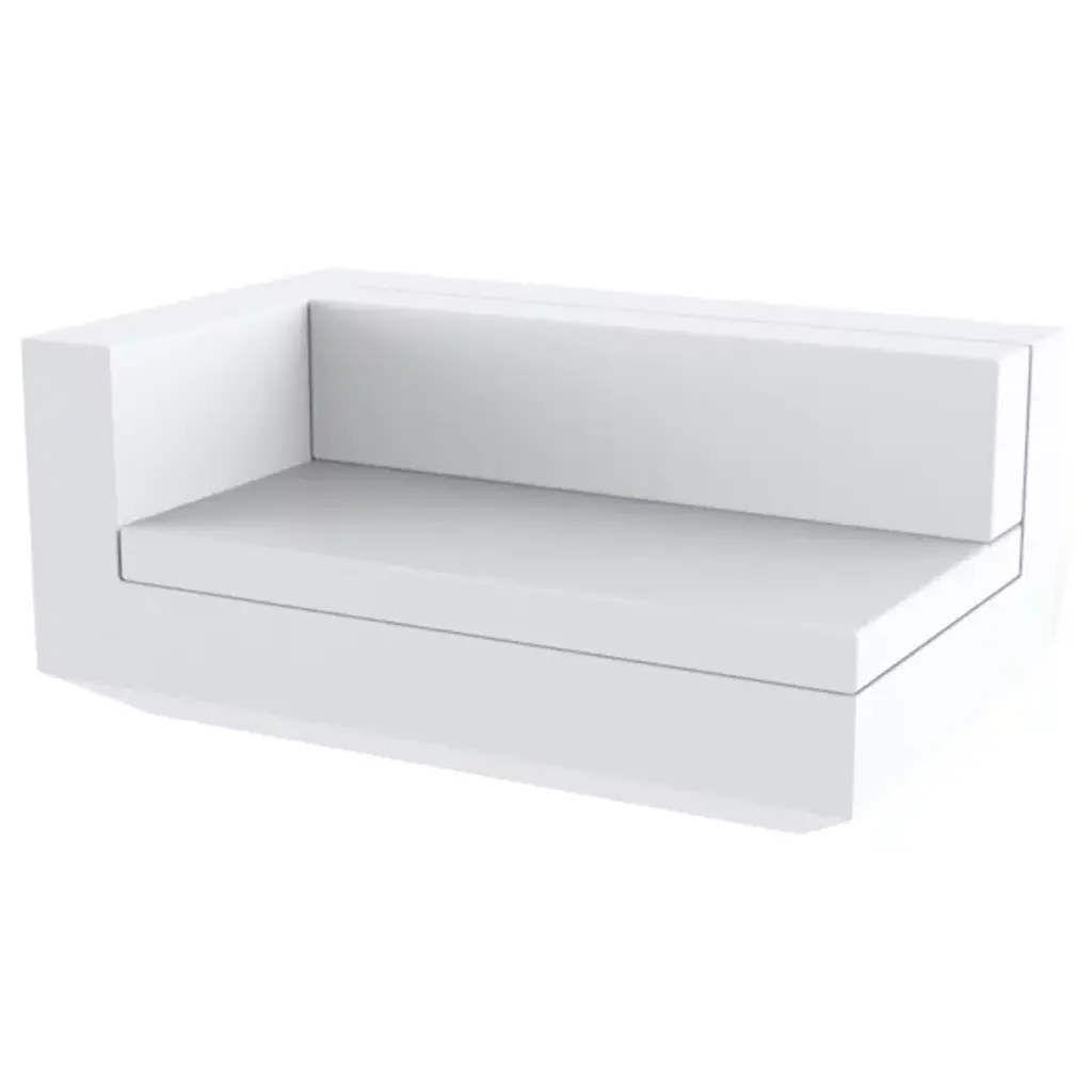 If you like a little more room in your sectional, the Vela Outdoor Sofa XL Left Arm Section is there to provide it. This modular component of the Vela sectional sofa is nearly 2 feet longer than the standard Vela Left Arm Section. It includes the same angular base made out of matte white polyethylene and sharply tailored--yet soft-feeling--cushions in matching white all-weather vinyl.