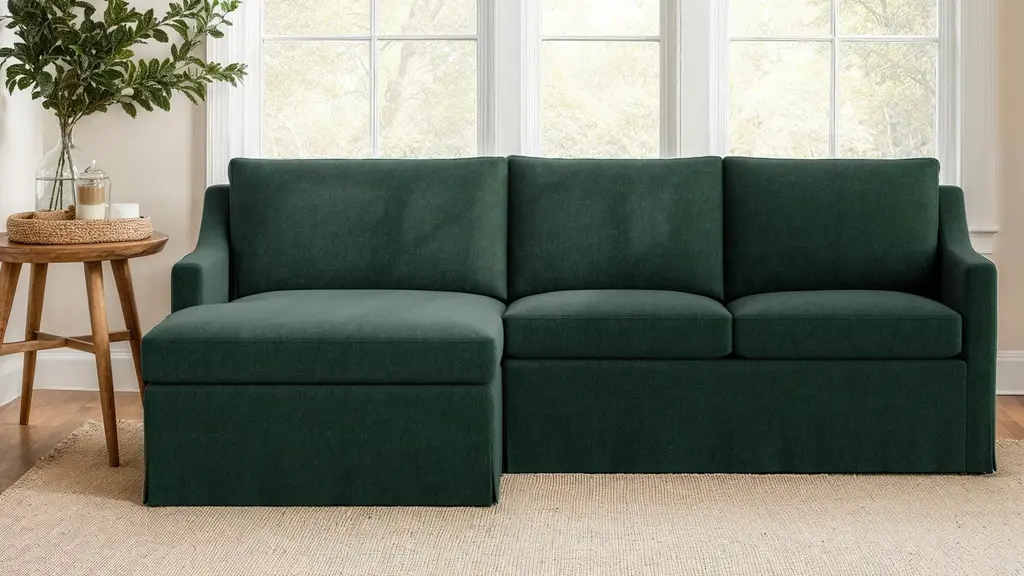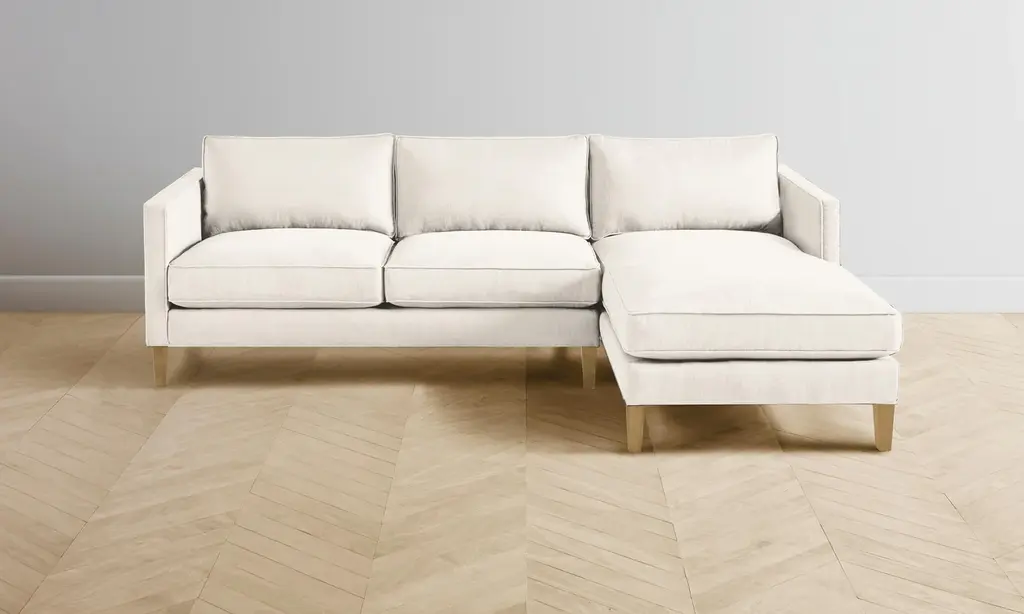 DESIGN The Vera Skirted Sofa with Chaise features a sleek, tailored skirt and elegant sloped arms, for a silhouette that’s equally at home in a city apartment or laid-back beach retreat. Designed for everyday comfort, the Vera collection features a high back and soft-yet-supportive cushions - perfect for an evening of entertaining or lounging. Choose from more than 100 luxe and performance textile options to customize your Vera Skirted Sofa with Chaise. Create a traditional skirted look with a performance weave fabric (without sacrificing durability!) or go with velvet for an extra dose of drama. For assistance picking the perfect fabric, reach out to our design team. For a more transitional style, explore the Vera collection with exposed wooden legs. Handcrafted in the USA and built to last, the Vera Skirted Sofa with Chaise is backed by our limited lifetime warranty. FEATURES Solid Foundation: Our frames are constructed from precision-cut, FSC-certified engineered wood for unmatched strength and stability, featuring reinforced, interlocking joinery for added durability. Customizable Cushion Options: Choose from foam & fiber or down alternative cushions. Foam & fiber cushions are made from high-quality, high-resiliency CertiPUR-US® foam wrapped in premium fiber, giving you a supportive, comfortable sit and a sleek look that's low maintenance. Down alternative cushions feature a back cushion that's filled with 100% premium fiber and a seat cushion with a high-quality, high-resiliency CertiPUR-US® foam core wrapped in down-alternative fiber. Down alternative cushions give you sink-in comfort with a supportive sit & a relaxed look. Regular fluffing keeps your piece looking perfect. CertiPur-US® foam is held to the highest standards of product safety and durability, so you can rest easy. Supportive Webbing Suspension: Designed to maximize comfort, our premium webbing system provides a resilient foundation. Customizable Upholstery: Choose from a vast selection of durable premium and performance fabrics to personalize your Vera Skirted Sofa with Chaise's look.