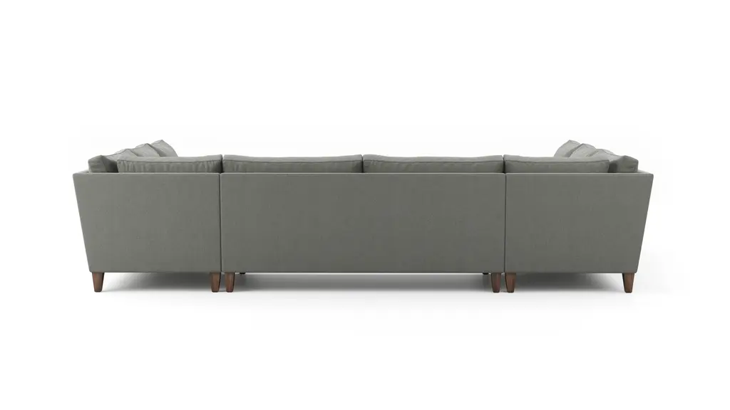 DESIGN Clean, tailored lines meet classic comfort in the Vera U-Shaped Sectional. With a high back and soft-yet-supportive cushions, the spacious Vera U-Shaped Sectional is the ultimate spot for an afternoon of lounging or evening entertaining. Customize the look of your Vera U-Shaped Sectional with more than 125 upholstery options. Select the angled legs for a transitional look, or turned legs for a touch of whimsy. Ready to take traditional style a step further? Explore the Vera Skirted collection. Crafted for durability by American craftsmen, the Vera U-Shaped Sectional is protected by our limited lifetime warranty. FEATURES Solid Foundation: Our frames are constructed from precision-cut, FSC-certified engineered wood for unmatched strength and stability, featuring reinforced, interlocking joinery for added durability. Customizable Cushion Options: Choose from foam & fiber or down alternative cushions. Foam & fiber cushions are made from high-quality, high-resiliency CertiPUR-US® foam wrapped in premium fiber, giving you a supportive, comfortable sit and a sleek look that's low maintenance. Down alternative cushions feature a back cushion that's filled with 100% premium fiber and a seat cushion with a high-quality, high-resiliency CertiPUR-US® foam core wrapped in down-alternative fiber. Down alternative cushions give you sink-in comfort with a supportive sit & a relaxed look. Regular fluffing keeps your piece looking perfect. CertiPur-US® foam is held to the highest standards of product safety and durability, so you can rest easy. Supportive Webbing Suspension: Designed to maximize comfort, our premium webbing system provides a resilient foundation. Customizable Upholstery: Choose from a vast selection of durable premium and performance fabrics and genuine Italian leather to personalize your Vera U-Shaped Sectional's look.