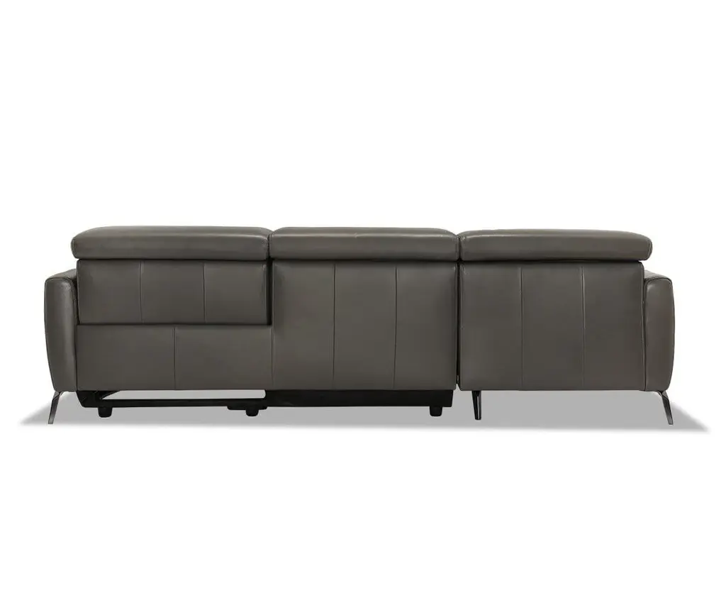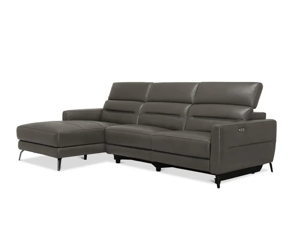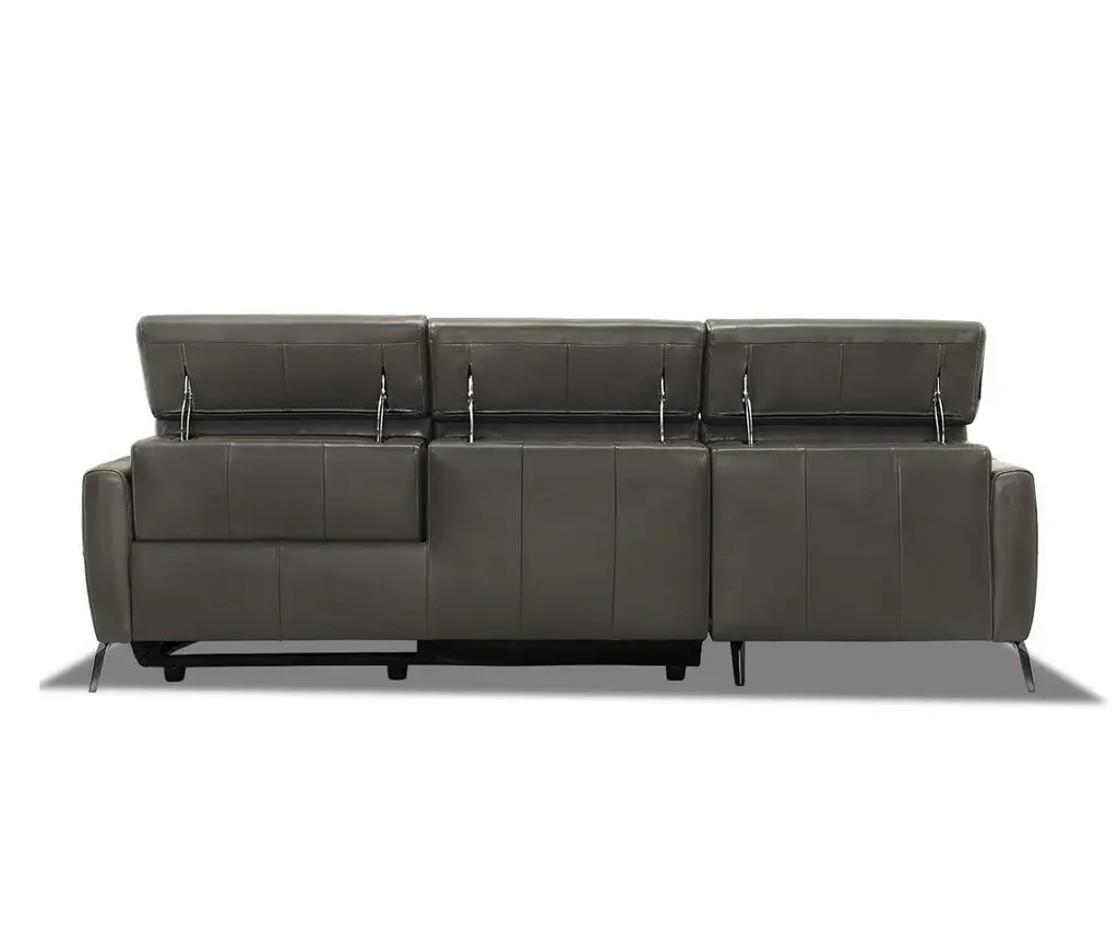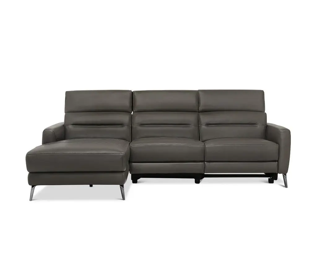 Whether you're ready to sprawl out or curl up, the Vetali Chaise Sectional is ready to be your new go-to place for relaxing. The lounging chaise section of this piece comes with a ratcheting headrest, while the middle seat offers comfortably deep seating and an additional ratcheting headrest. The seat furthest from the lounging chaise comes complete with a power seat, power headrest and USB port. This sectional is elevated by slim metal legs, and is outfitted with luxuriously soft leather upholstery and decorative stitching. Contemporary, sleek and comfortable, the Vetali Chaise Sectional is ready to be fluidly integrated into any space or style.