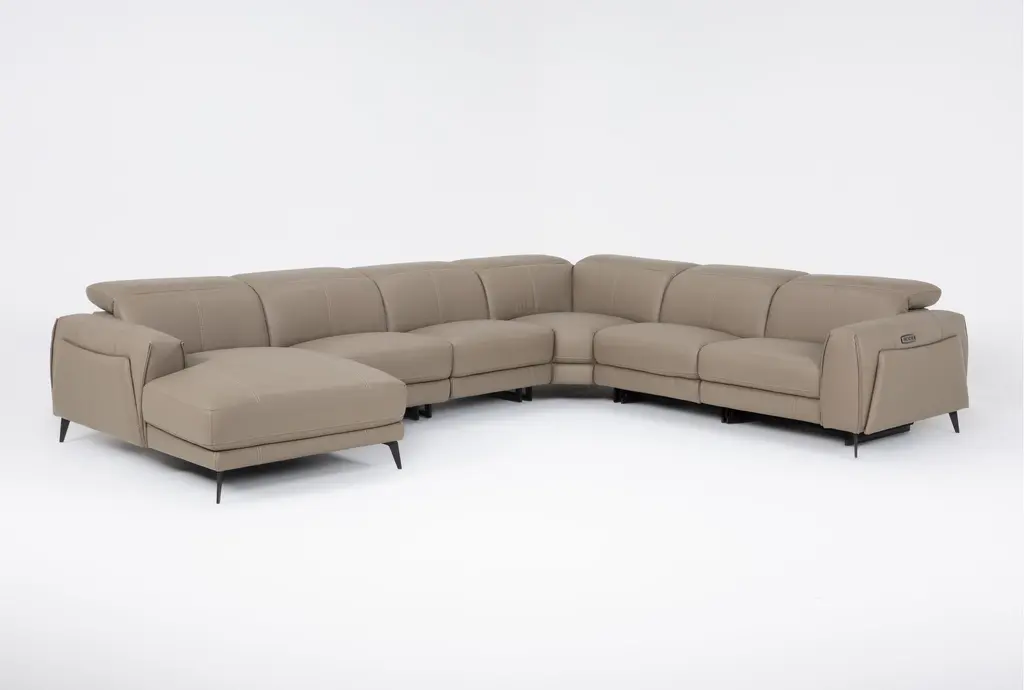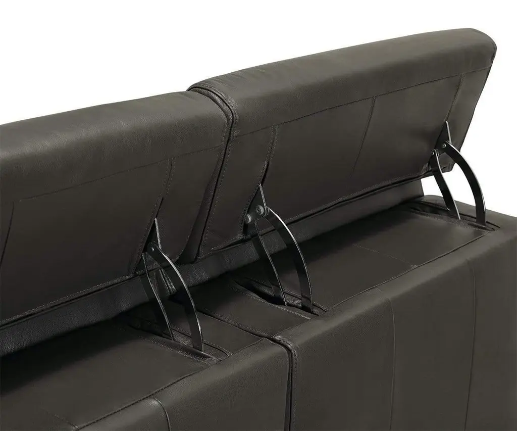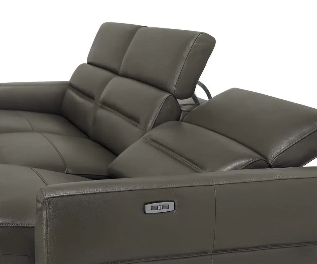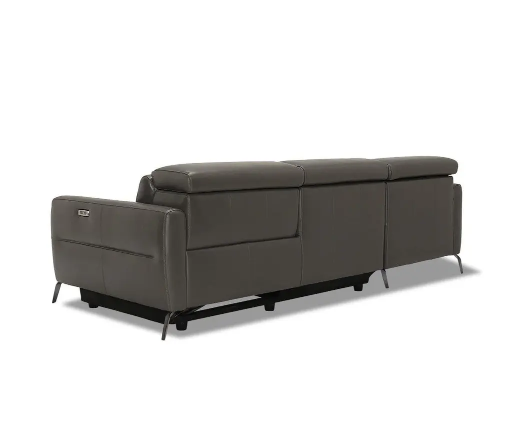 Whether you're ready to sprawl out or curl up, the Vetali Chaise Sectional is ready to be your new go-to place for relaxing. The lounging chaise section of this piece comes with a ratcheting headrest, while the middle seat offers comfortably deep seating and an additional ratcheting headrest. The seat furthest from the lounging chaise comes complete with a power seat, power headrest and USB port. This sectional is elevated by slim metal legs, and is outfitted with luxuriously soft leather upholstery and decorative stitching. Contemporary, sleek and comfortable, the Vetali Chaise Sectional is ready to be fluidly integrated into any space or style.