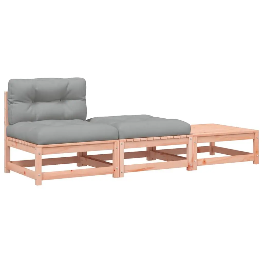 This modular sectional sofa is the best choice for relaxing indoors or outdoors. With a modern look, it enhances any patio, garden, or outdoor space with its stylish grey and natural wood finish. It’s perfect for get-togethers, comfortably seating up to four people, creating a welcoming area to enjoy the outdoors while looking stunning and blending beautifully with nature. Durable Build: Built from solid Douglas Fir wood, this sofa can handle the weather and give you solid support for all your outdoor get-togethers. The untreated wood showcases its strong and enduring quality.Modular Design: Change the layout easily to fit your needs. Whether you’re going for a cozy corner or a bigger seating area, this sofa adapts without any hassle.Weather-Resistant Cushions: Each sofa comes with weather-resistant cushions made of breathable fabric, offering comfort and long-lasting use, all while looking awesome.Stylish Aesthetic: The sleek grey wood finish adds a touch of class, making it a perfect match for modern outdoor settings. Its smooth textures and neat design complement each other beautifully.Versatile Usage: A great fit for various spots like gardens, terraces, and balconies; this sectional sofa encourages chill times and makes it easy to unwind in any outdoor spot.