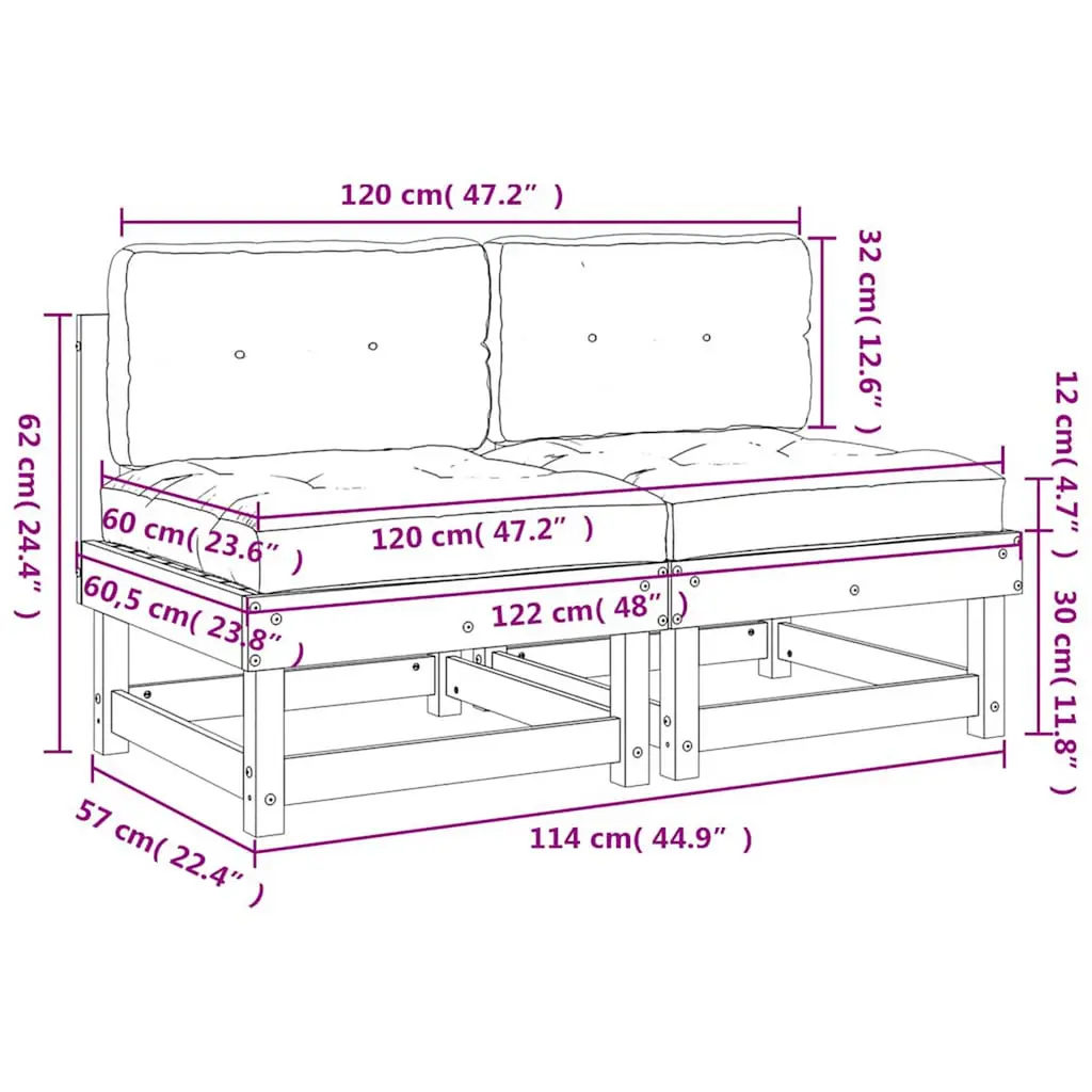 Vidaxl Middle Sofa Grey Solid Pine Wood, Oxford Fabric, Pp Cotton Standard