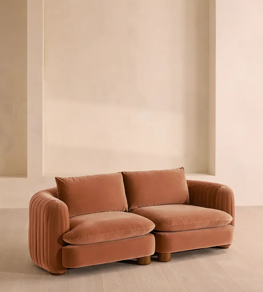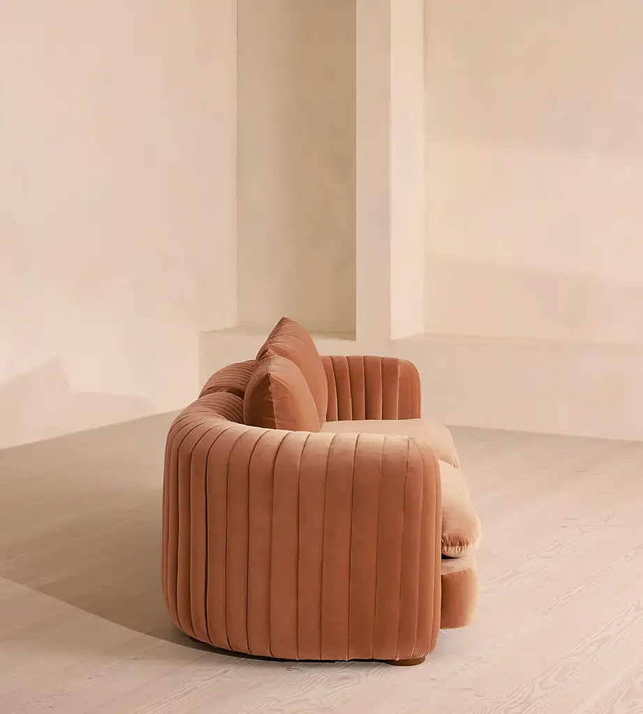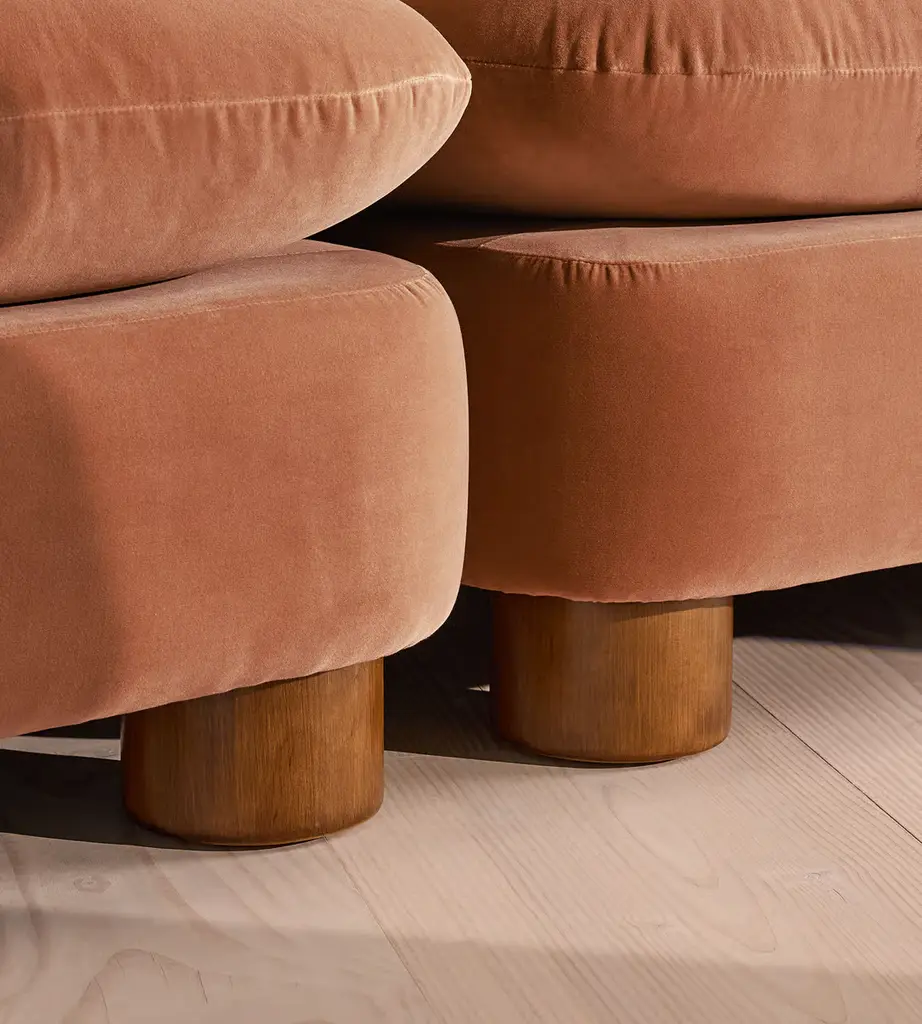 A House favorite, now with a deeper sit, this velvet-wrapped modular sofa is designed to adapt to your space. A member favorite, the Vivienne sofa is heavily inspired by London's White City House. Characterized by a low, wraparound silhouette built for comfort and a new deeper sit, this modular design is made to work with your room, piecing together with other sections to create the sofa of your choice.