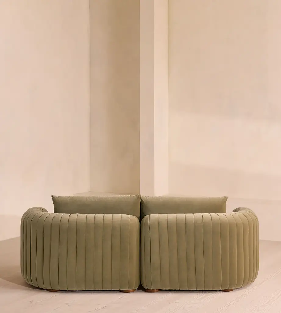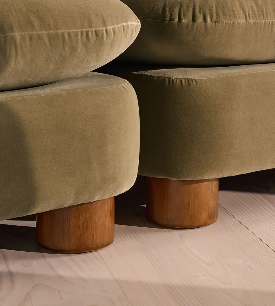 A House favorite, now with a deeper sit, this velvet-wrapped modular sofa is designed to adapt to your space. A member favorite, the Vivienne sofa is heavily inspired by London's White City House. Characterized by a low, wraparound silhouette built for comfort and a new deeper sit, this modular design is made to work with your room, piecing together with other sections to create the sofa of your choice.