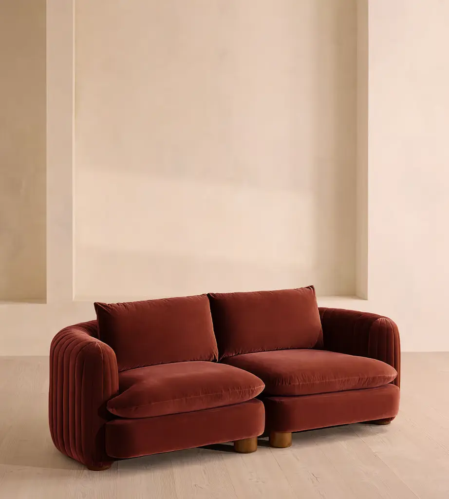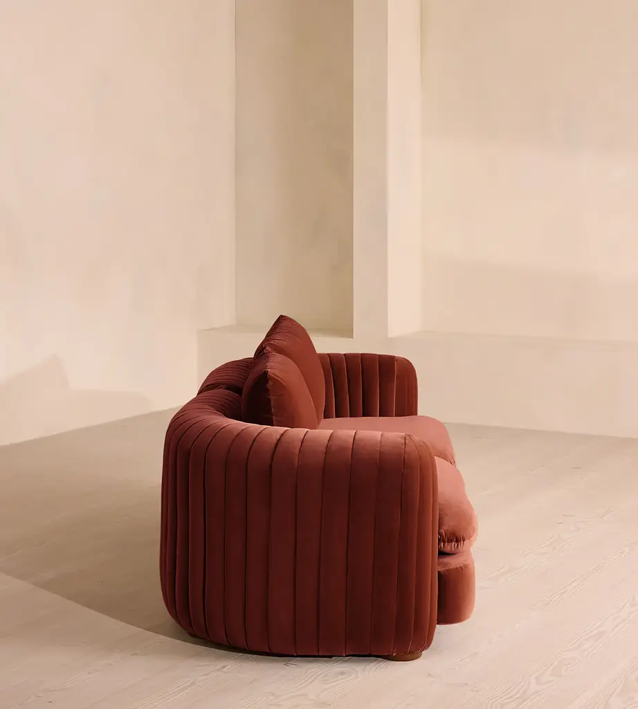 A House favorite, now with a deeper sit, this velvet-wrapped modular sofa is designed to adapt to your space. A member favorite, the Vivienne sofa is heavily inspired by London's White City House. Characterized by a low, wraparound silhouette built for comfort and a new deeper sit, this modular design is made to work with your room, piecing together with other sections to create the sofa of your choice.