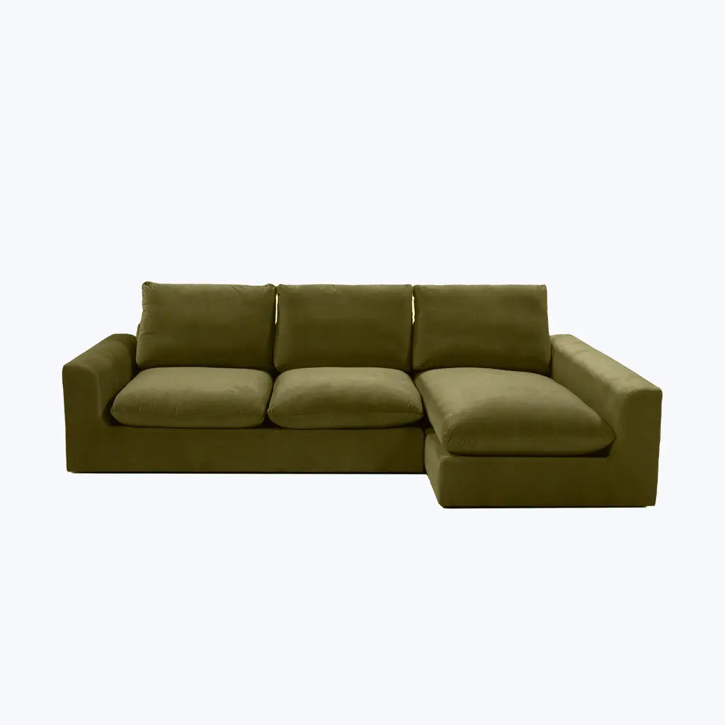 Discover the Waverly Chaise Sectional by Cobble Hill. Crafted in the USA exclusively for abc, this elegant sectional combines sink-in comfort with gentle curves and a crisp, contemporary silhouette. Pair with the Waverly Ottoman. Customizable in a wide range of fabrics.