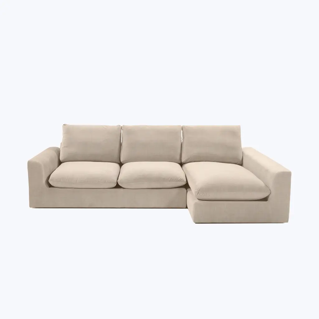 Discover the Waverly Chaise Sectional by Cobble Hill. Crafted in the USA exclusively for abc, this elegant sectional combines sink-in comfort with gentle curves and a crisp, contemporary silhouette. Pair with the Waverly Ottoman. Customizable in a wide range of fabrics.