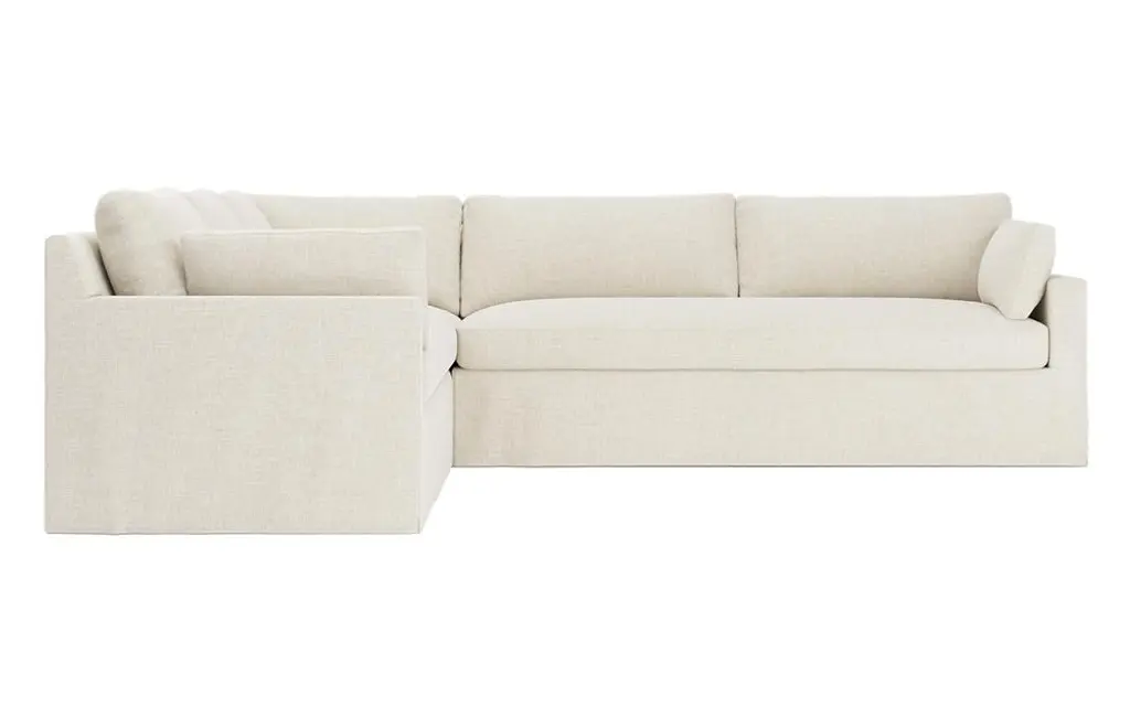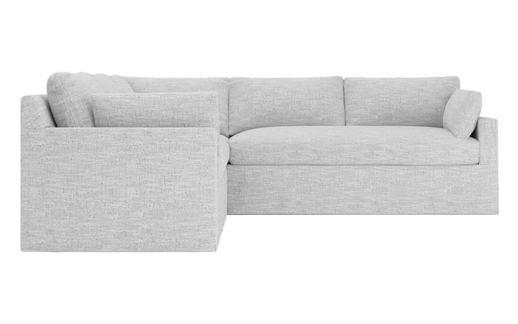 The right 123” Weybridge slipcovered corner sectional is a cozy foundation for the heart of any family room. A gently draped slipcover softens the look of its clean-lined, modern silhouette. Soft and supportive cushioning offers plush, cloud-like comfort, with a foam core surrounded by a blend of fiber, down, and feather fill. The long bench seat provides uninterrupted comfort. Choose from washable slipcover fabrics in a variety of serene hues.