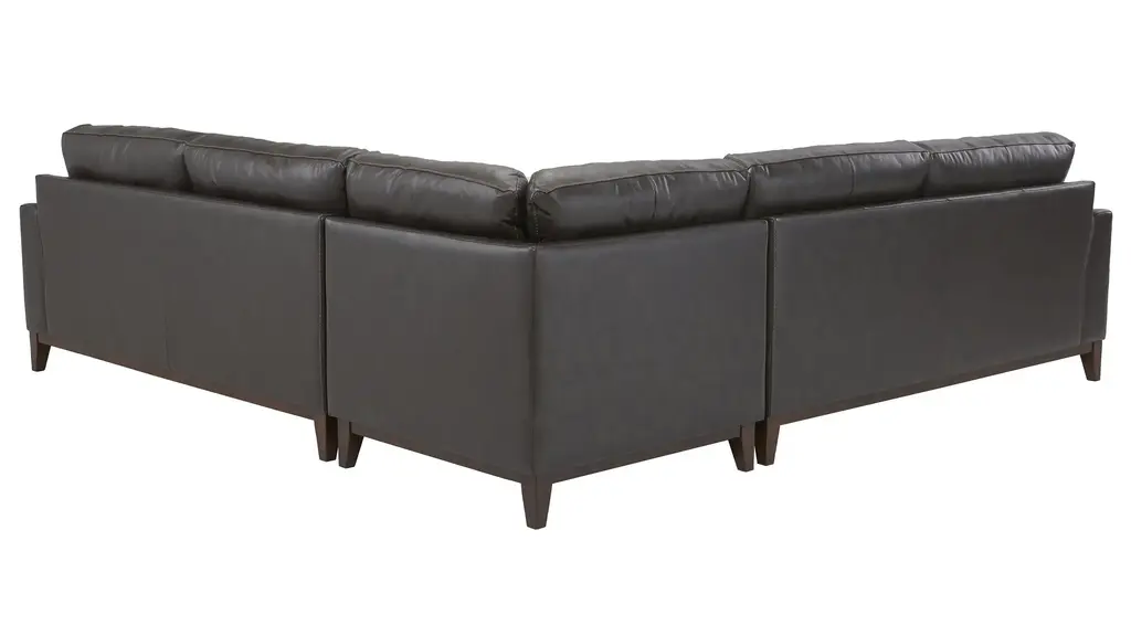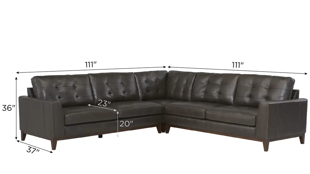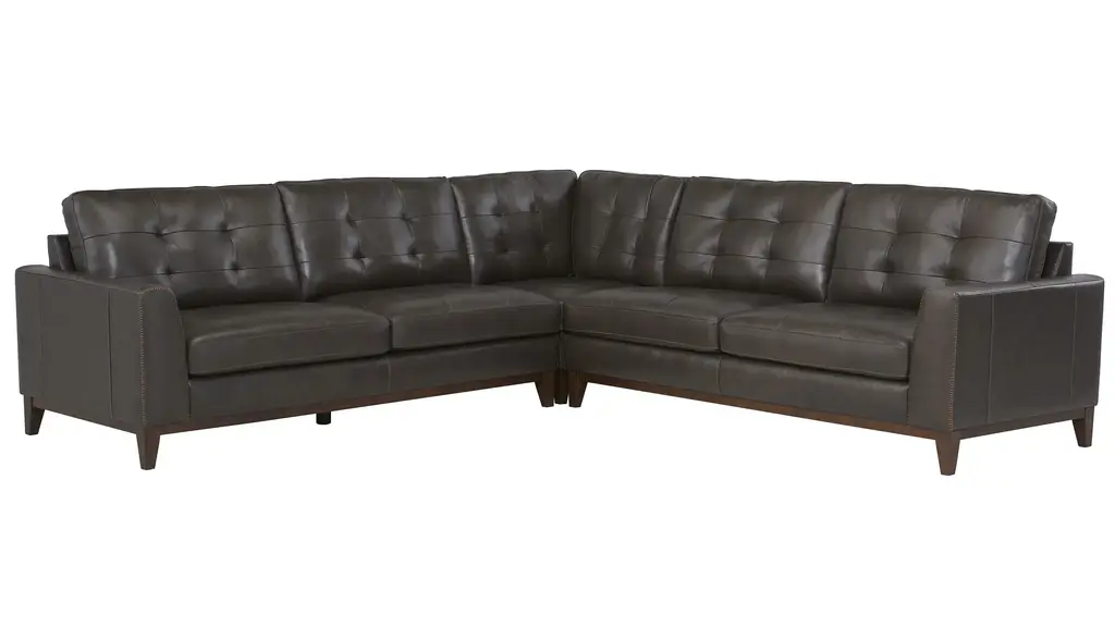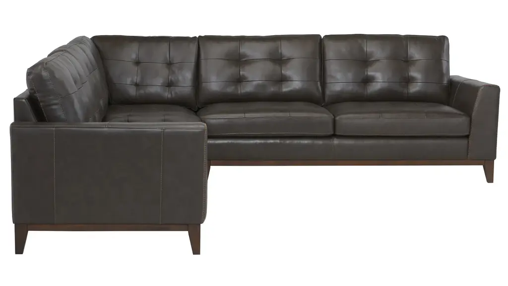 With an upscale rustic style, the Wheaton sectional is a beautiful centerpiece for a contemporary or transitional living space. Deep, tufted cushions and clean, angular lines bring a refined mid-century vibe, while the spacious seating area invites you to stretch out and unwind. Exposed and tapered wood legs and distinctive character add rich, warm character you'll love. Includes (left to right) left arm facing loveseat, corner, right arm facing loveseat.