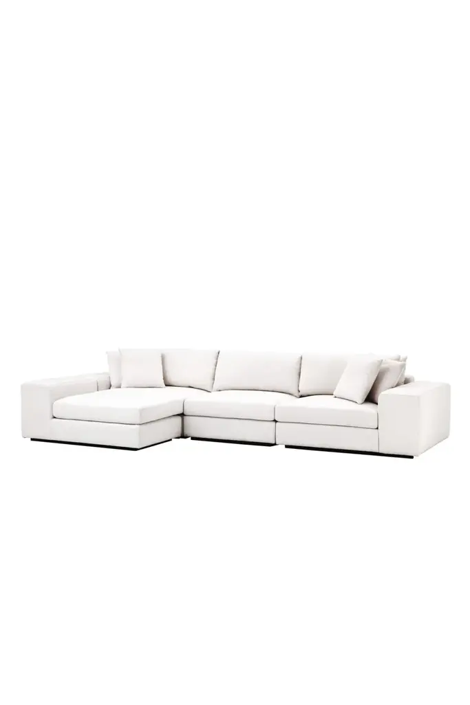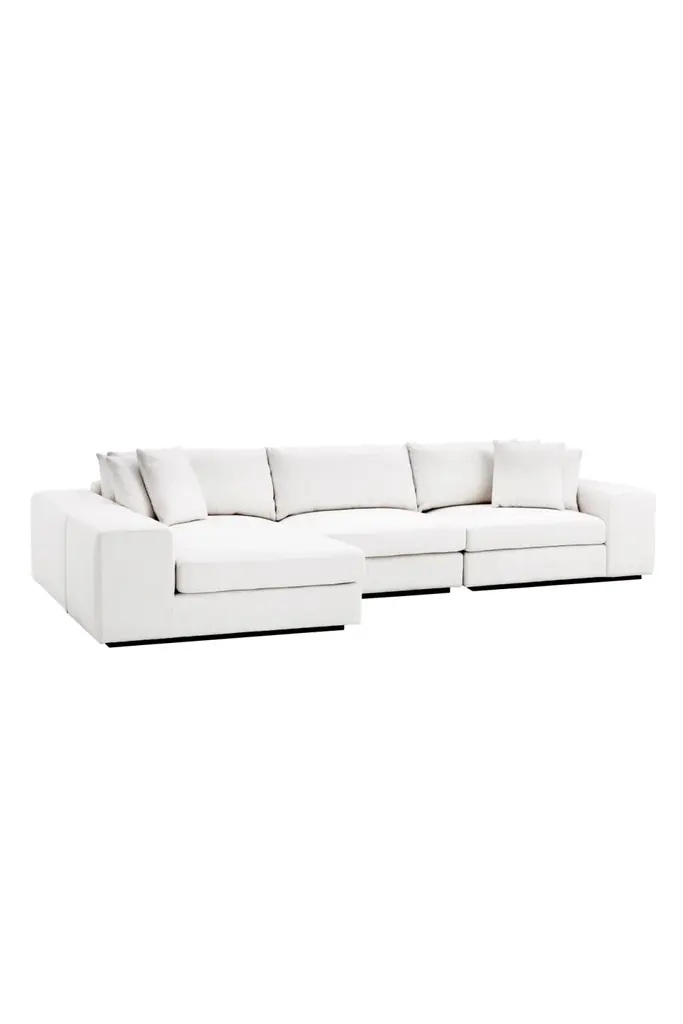 Go for luxury and flexibility with the White Sectional Sofa designed by Eichholtz. Exuding contemporary beauty, this ample snug couch offers various possibilities for composition. Thanks to its sectional setup you can compose this couch as either a left or a right corner sofa. Featuring an Avalon white upholstery and loose back cushions, it provides optimal comfort.