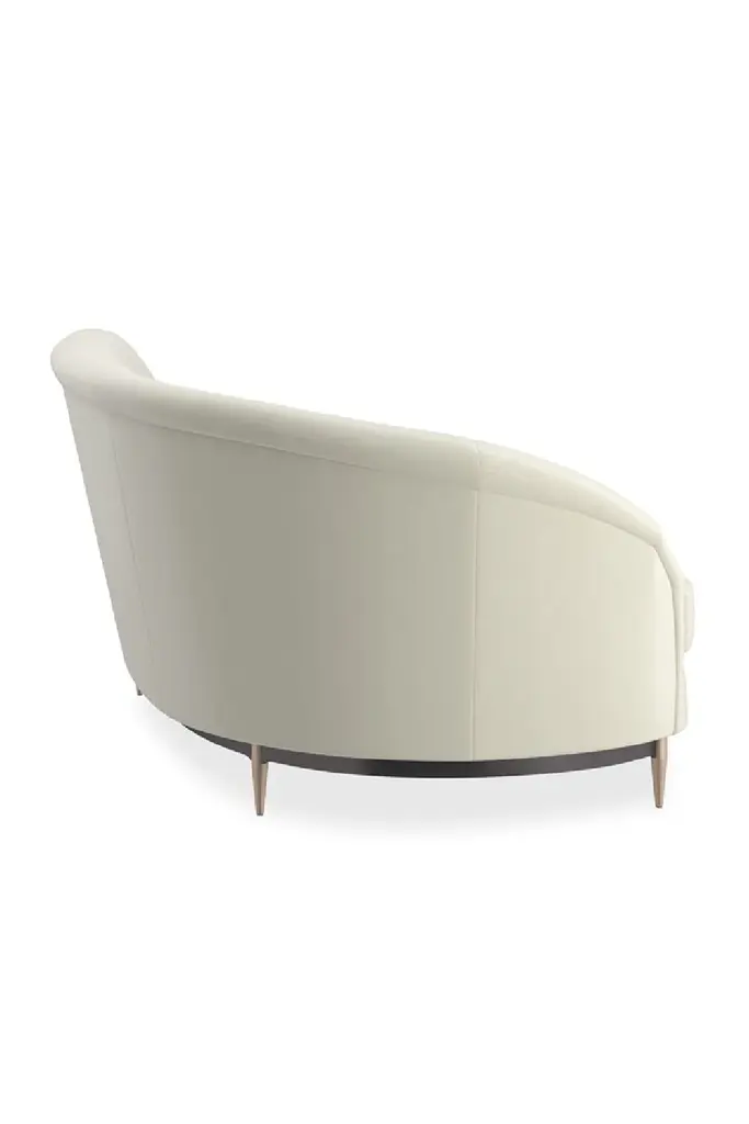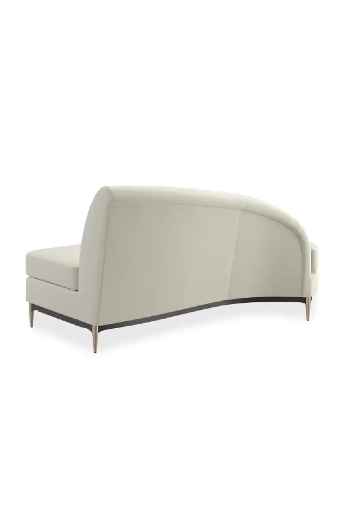 This regal sectional makes a dramatic showpiece that emanates glamour. Upholstered in velvet, its curved profile is complemented by sumptuous comfort. Its lower edge and outer arms are trimmed in Almost Black while its metal tapered feet are finished in Champagne Gold. Artful from edge to edge, this statement piece creates drama wherever it goes.