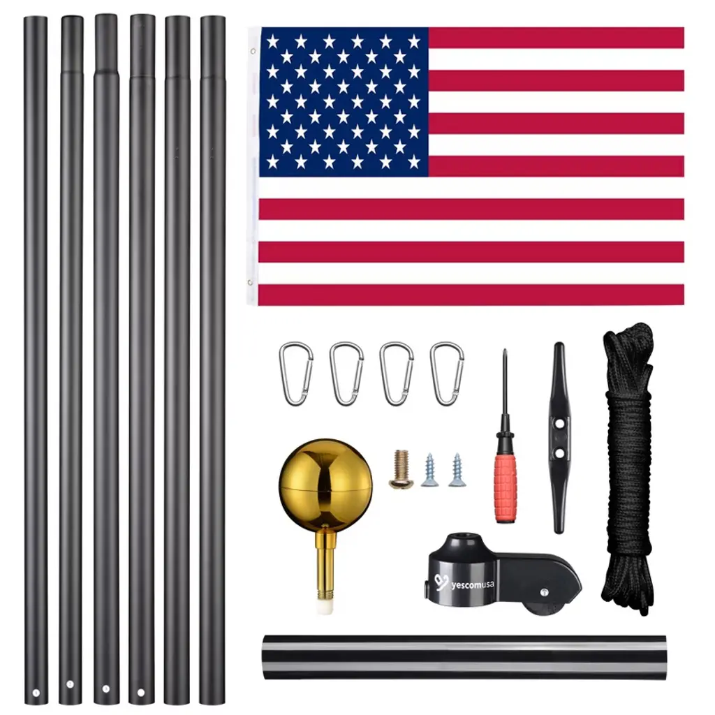 Yescom Bravery 20ft 13 Gauge Sectional Flag Pole Kit Aluminum For Outside House Inground Yard Garden Residential Black