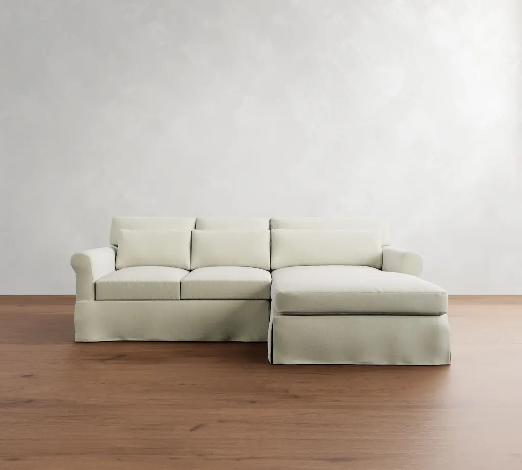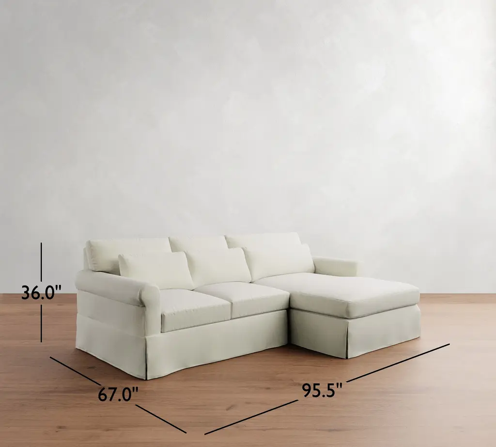 York Roll Arm Deep Seat Slipcovered Chaise Sectional (86"–117")