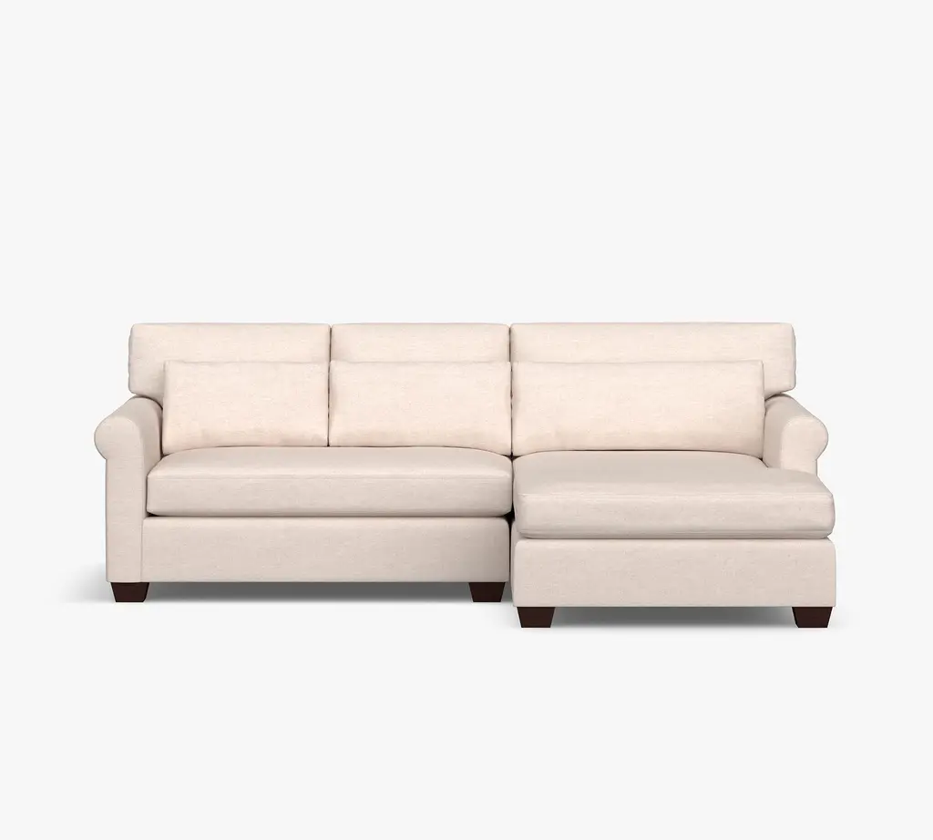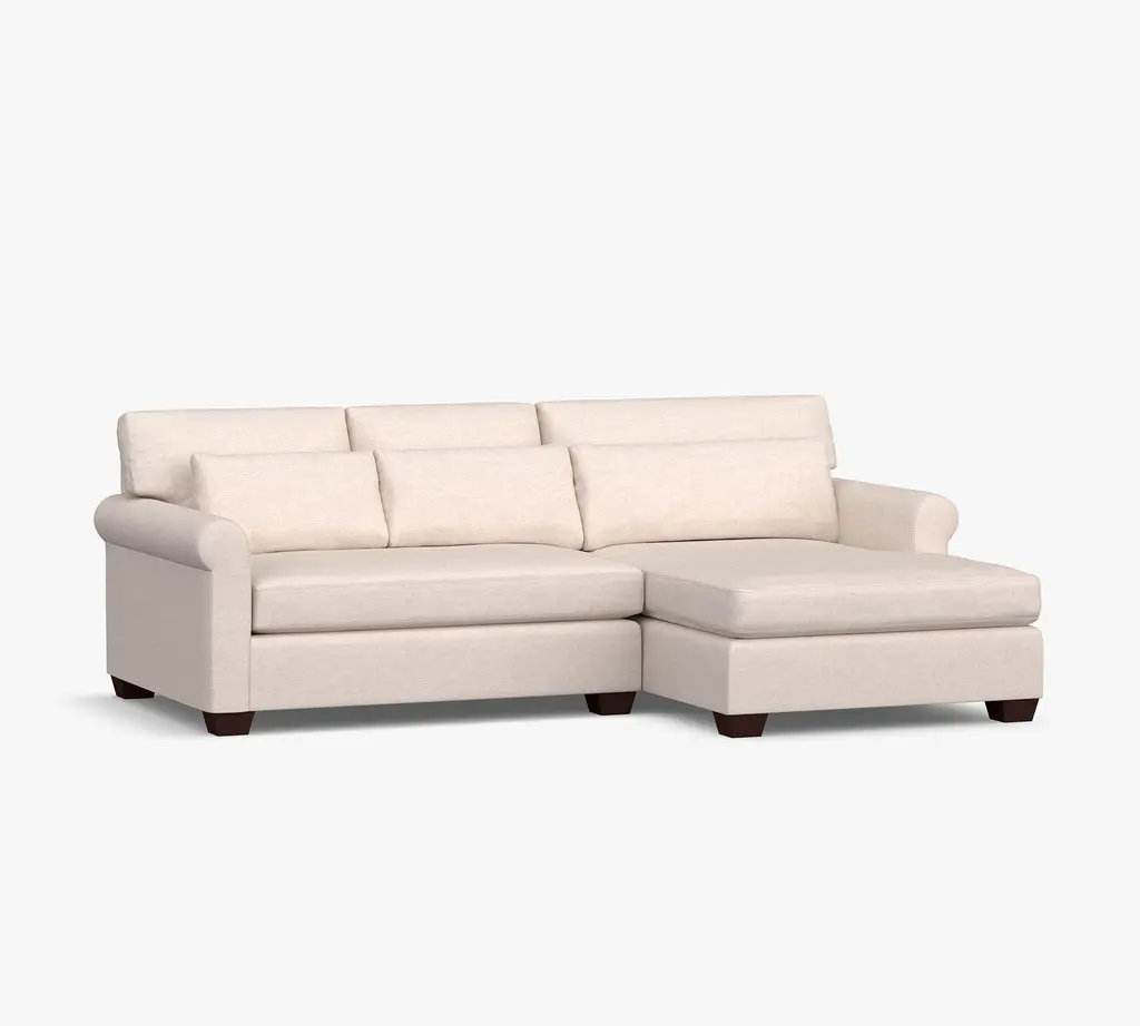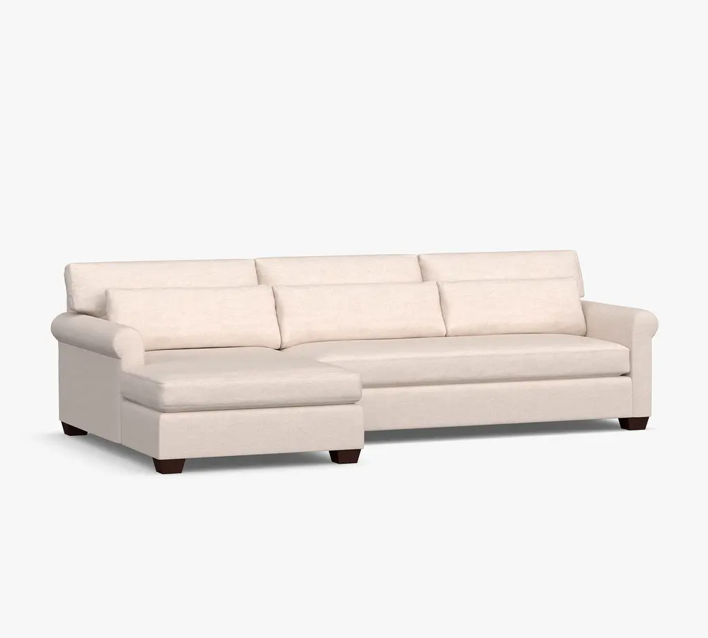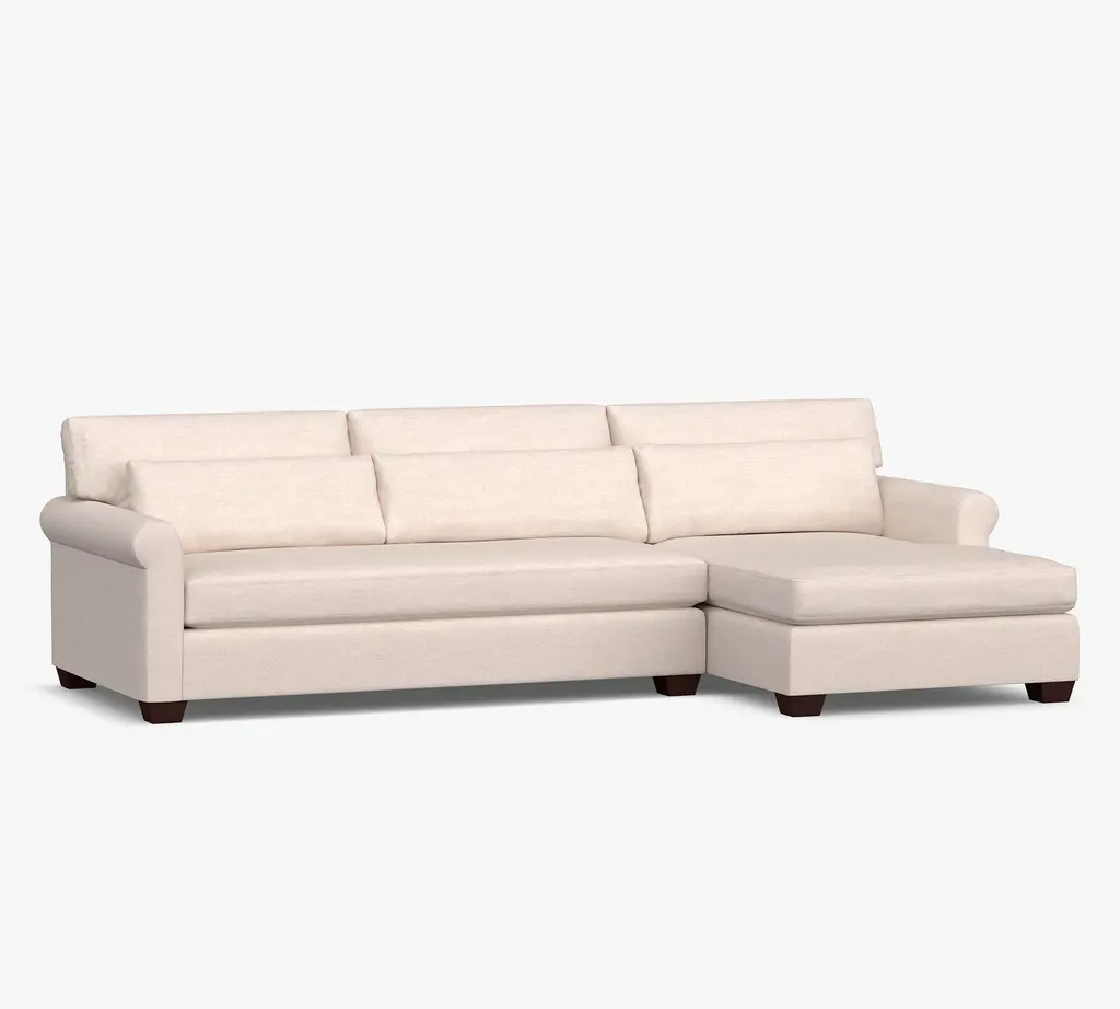 York Roll Arm Deep Seat Upholstered Sofa Double Wide Chaise Sectional