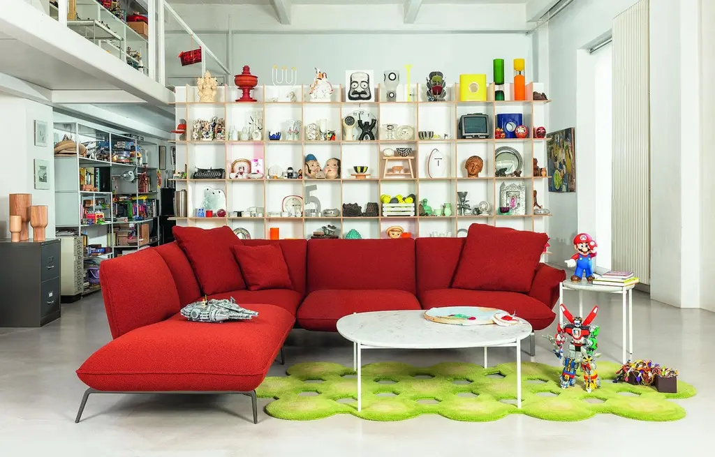 Zanotta Dove Sectional Sofa In Red Upholstery With Graphite Aluminium Frame