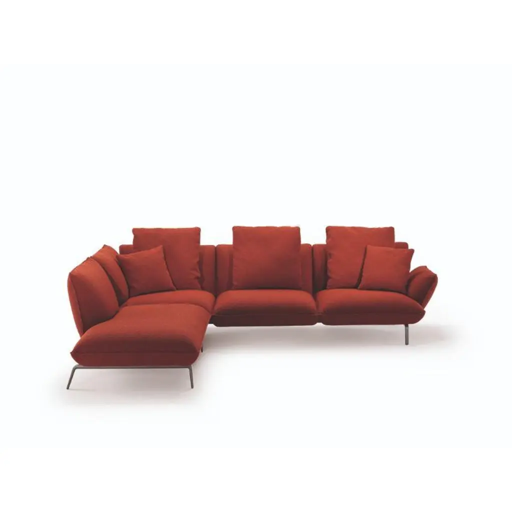 "Zanotta Dove Sectional Sofa in Red Upholstery with Graphite Aluminium Frame by Ludovica+Roberto PalombaGraphite painted aluminium alloy feet. Wooden seat frame. Elastic strips suspension. Steel backrest and armrests. Seat upholstered with graduated polyurethane/ heat-bound polyester fibre. Backrest and armrests upholstered with self-extinguishing polyurethane foam/heat-bound polyester fibre. Fixed internal nylon cover. Removable external fabric or leather cover.Additional Information:Material: Upholstery, aluminum Upholstery finish: Quid, cat. 40, 40326Frame finish: Graphite paintedDimension: 292 W x 253 D x 78 H cmSeat height: 42 cmAvailable in other upholstery options: Cat. 20, Cat. 30, Leather 90, Leather 95, Leather 98, Leather 99Available in other structural options"