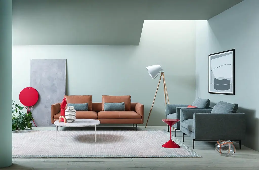 Zanotta Flamingo Sectional Sofa In Grey Upholstery With Polished Aluminum Frame