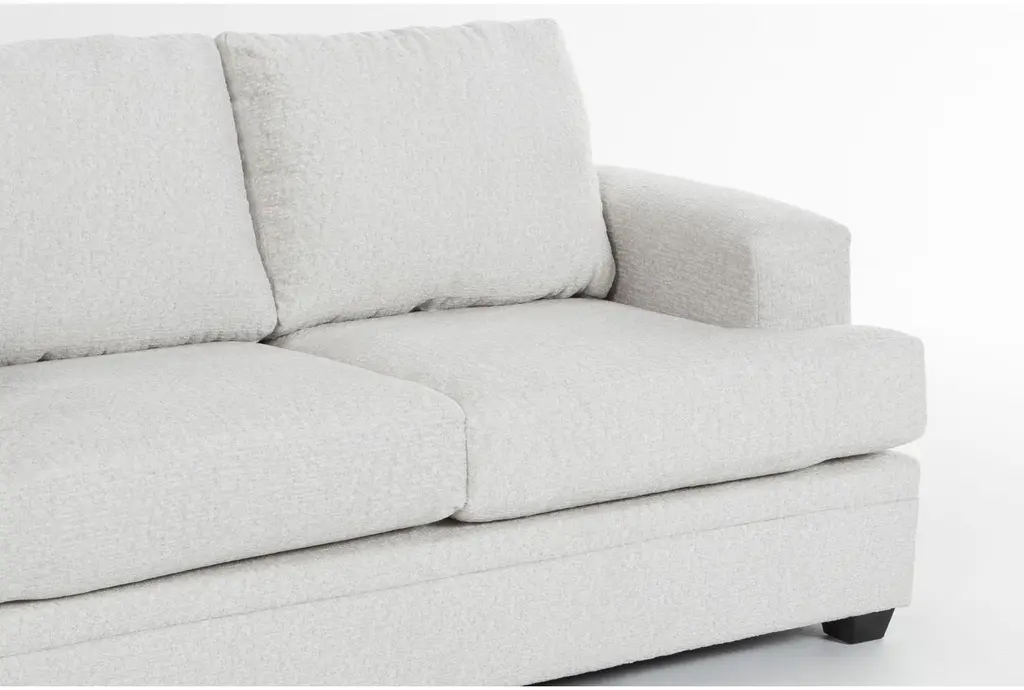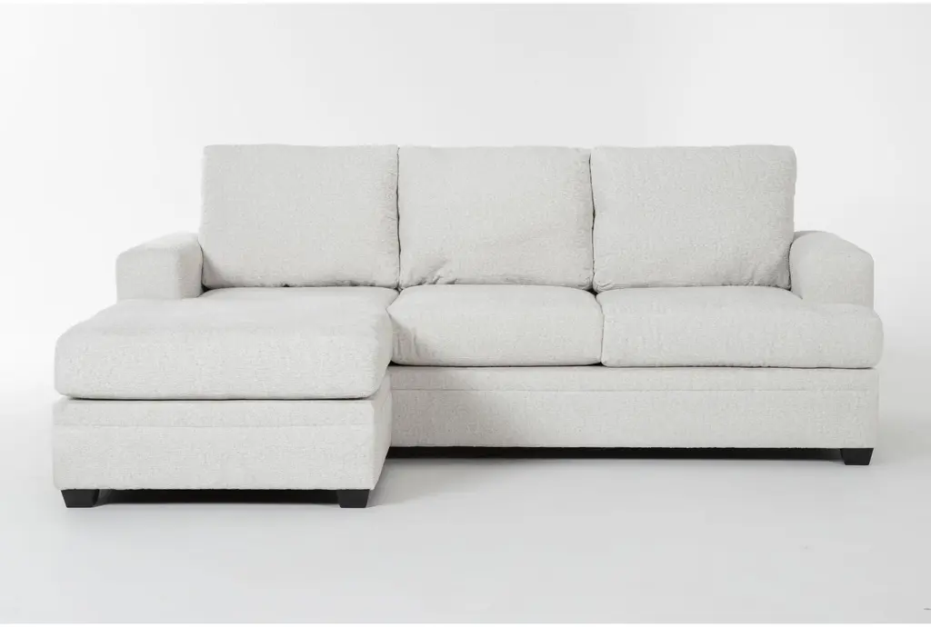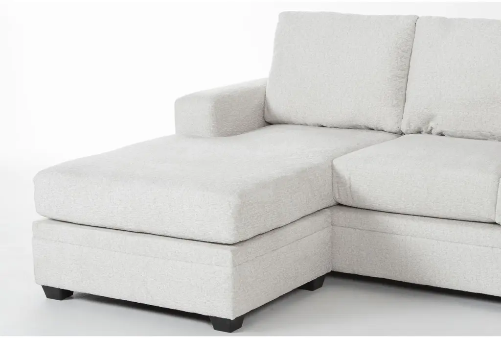 The Zoeller Sand Beige Fabric Sofa with Reversible Chaise and Loose Reversible Back is the perfect addition to any living room. Its casual style and neutral sand color make it a versatile choice for various decor themes. The 100% polyester fabric ensures durability and comfort for everyday use.