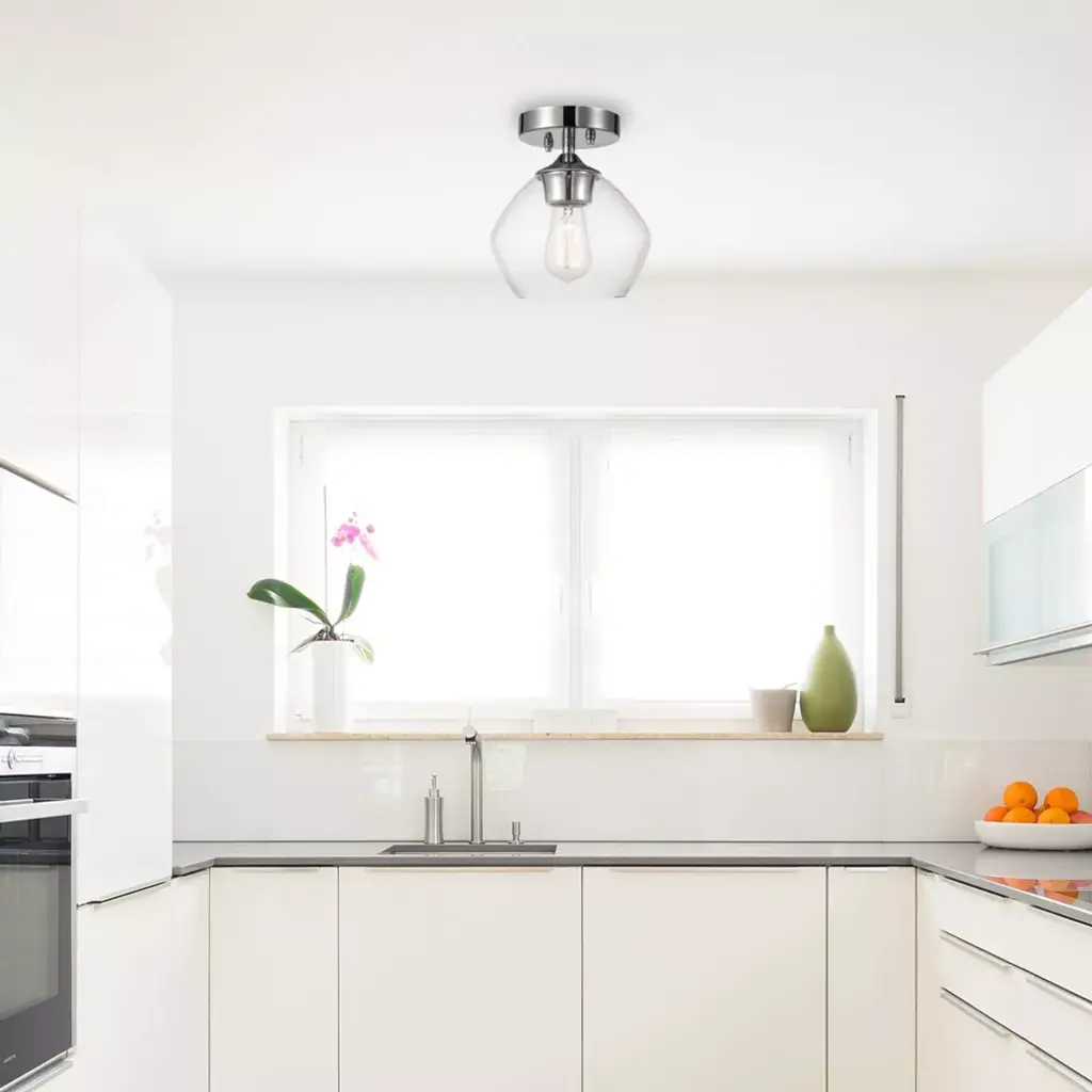 1 Light Harrow Semi Flush Mount Ceiling With Clear Glass Shade Chrome - Globe Electric: Etl Listed, Metal Body, No Switch