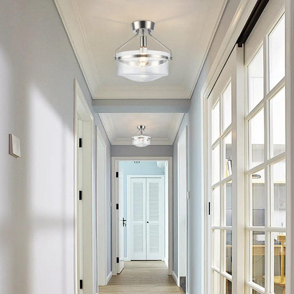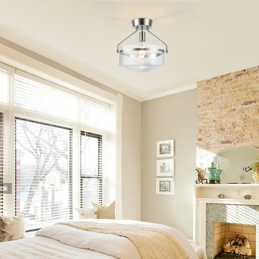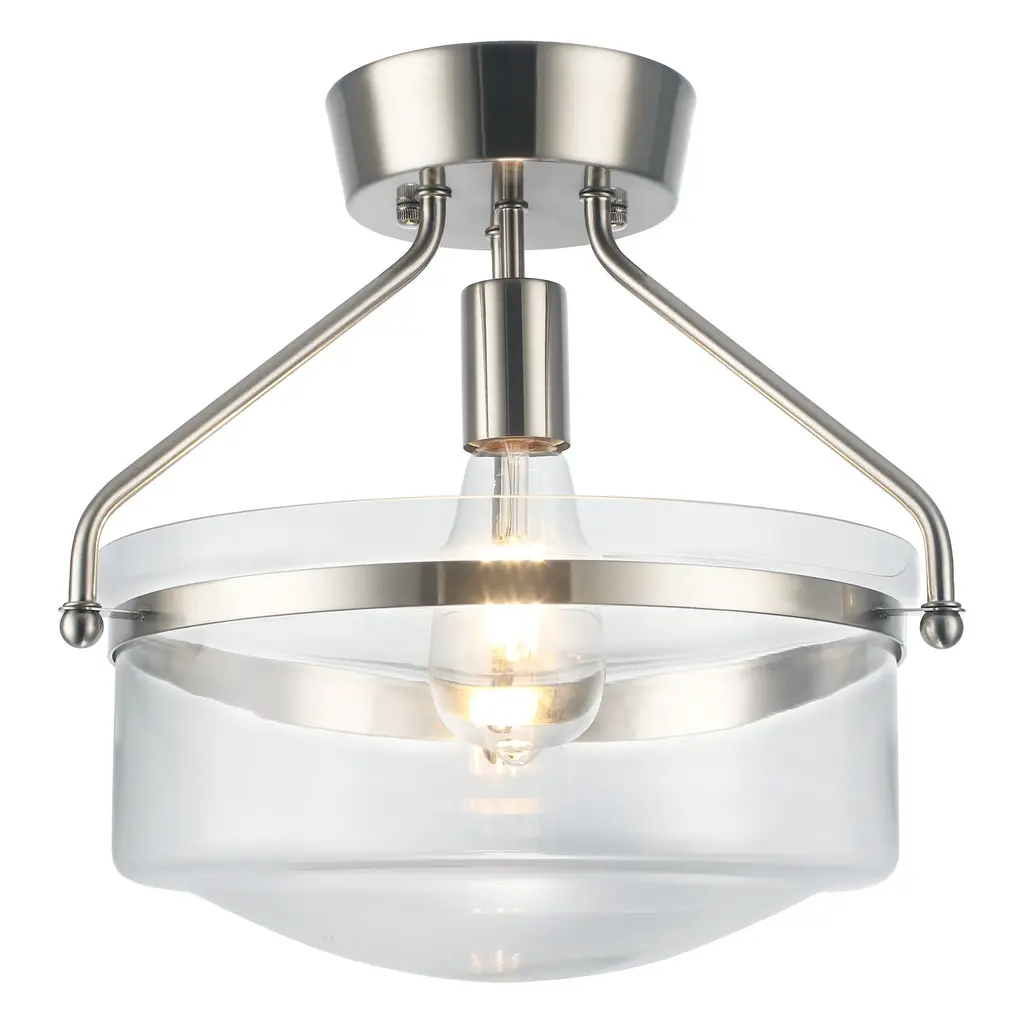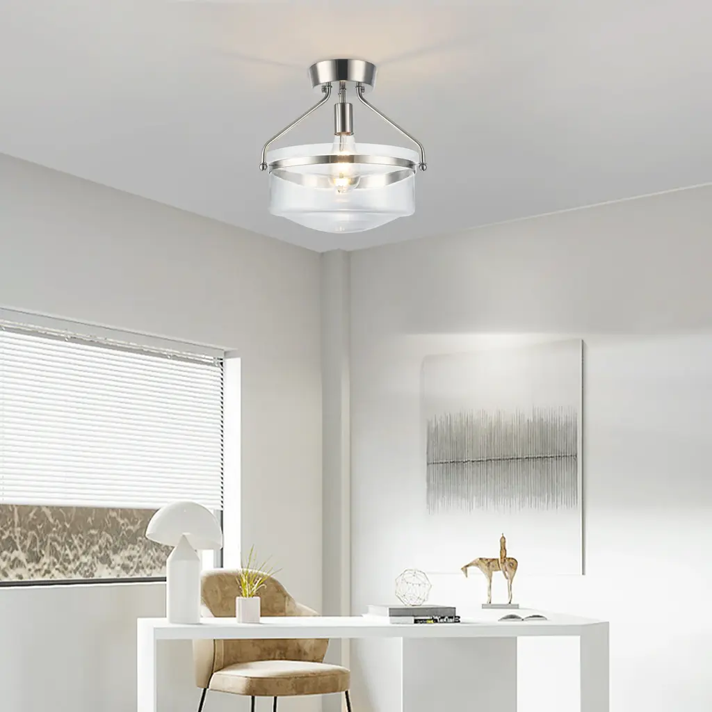1 - Light Modern Semi-Flush Mount Ceiling Lights With Clear Drum Glass - N/a - Sandnickel