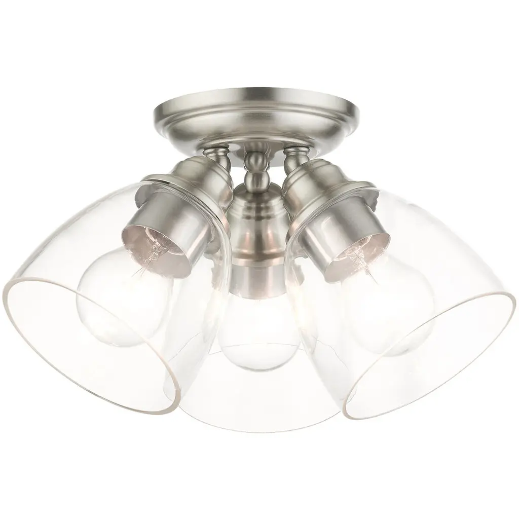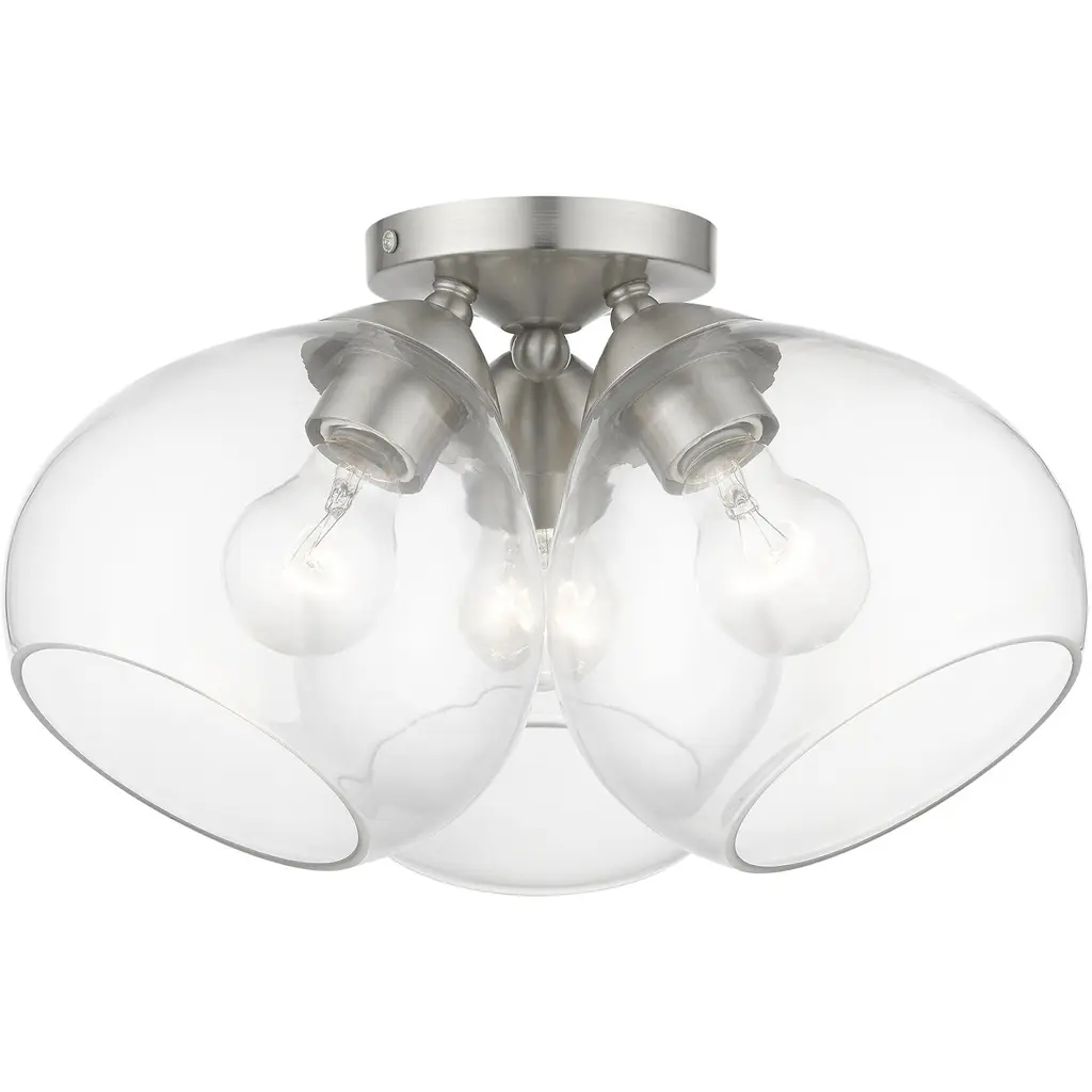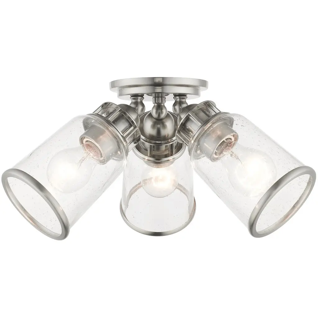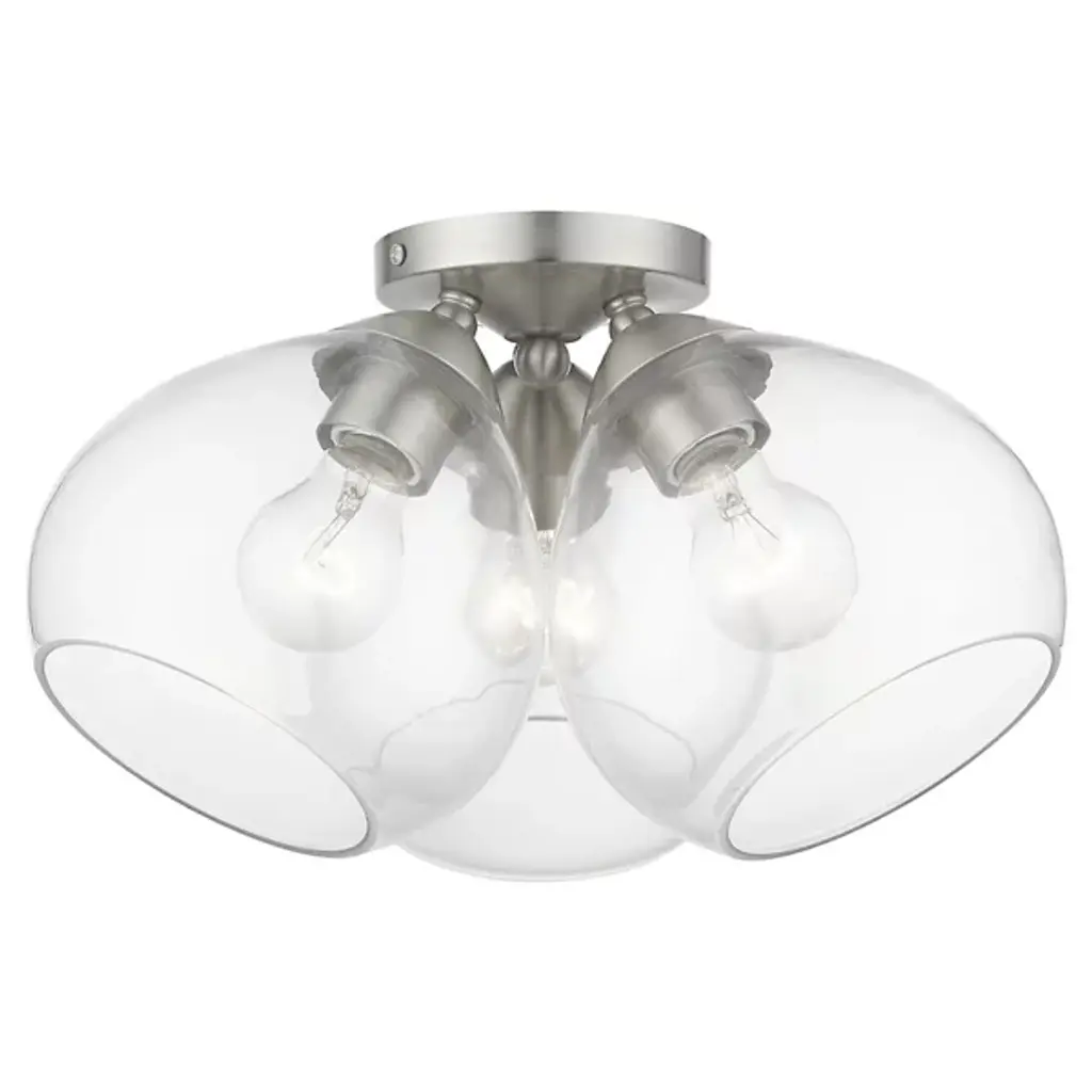 11.5" 3-light Iris Farmhouse Rustic Iron/glass Led Semi Flush Mount Nickel/clear - Jonathan Y