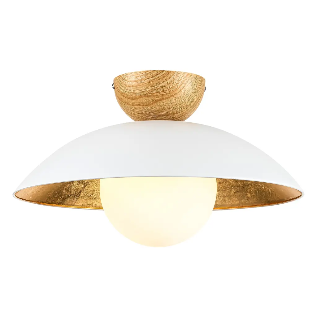 14.5 In. 1-Light Wood Gold Leaf Dome Semi-Flush Mount Light With Opal Glass Globe - 14.5 In. W X 8.2 In. H - Gold Leaf/white