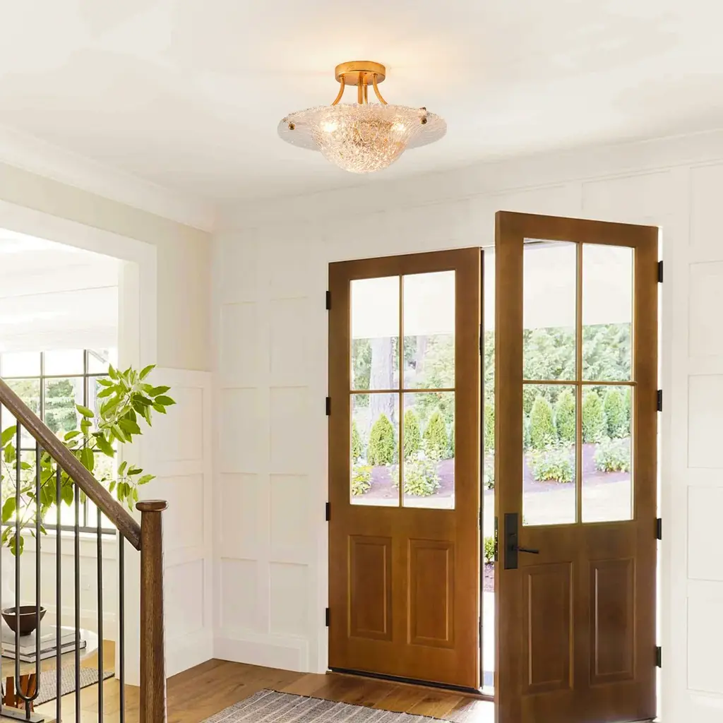 16 Inch Page 3-Light Vintage Golden Semi-Flush Mount Ceiling Light - Golden