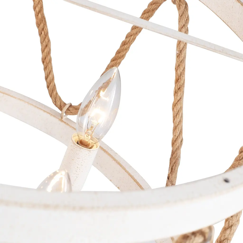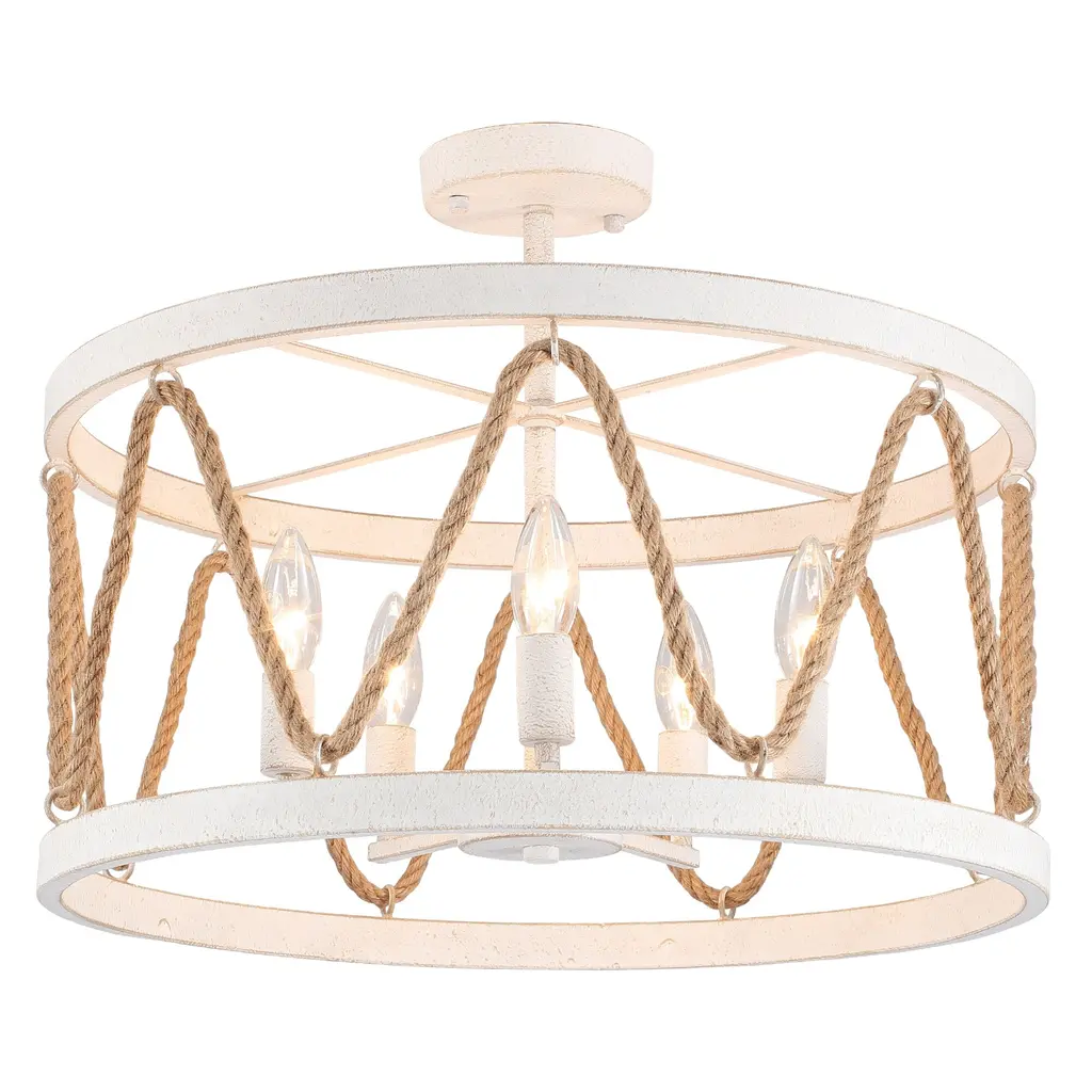19.68 In. 5-Light Metal Hemp Rope Candlestick Semi-Flush Mount Light Ceiling Light For Kitchen Island - White