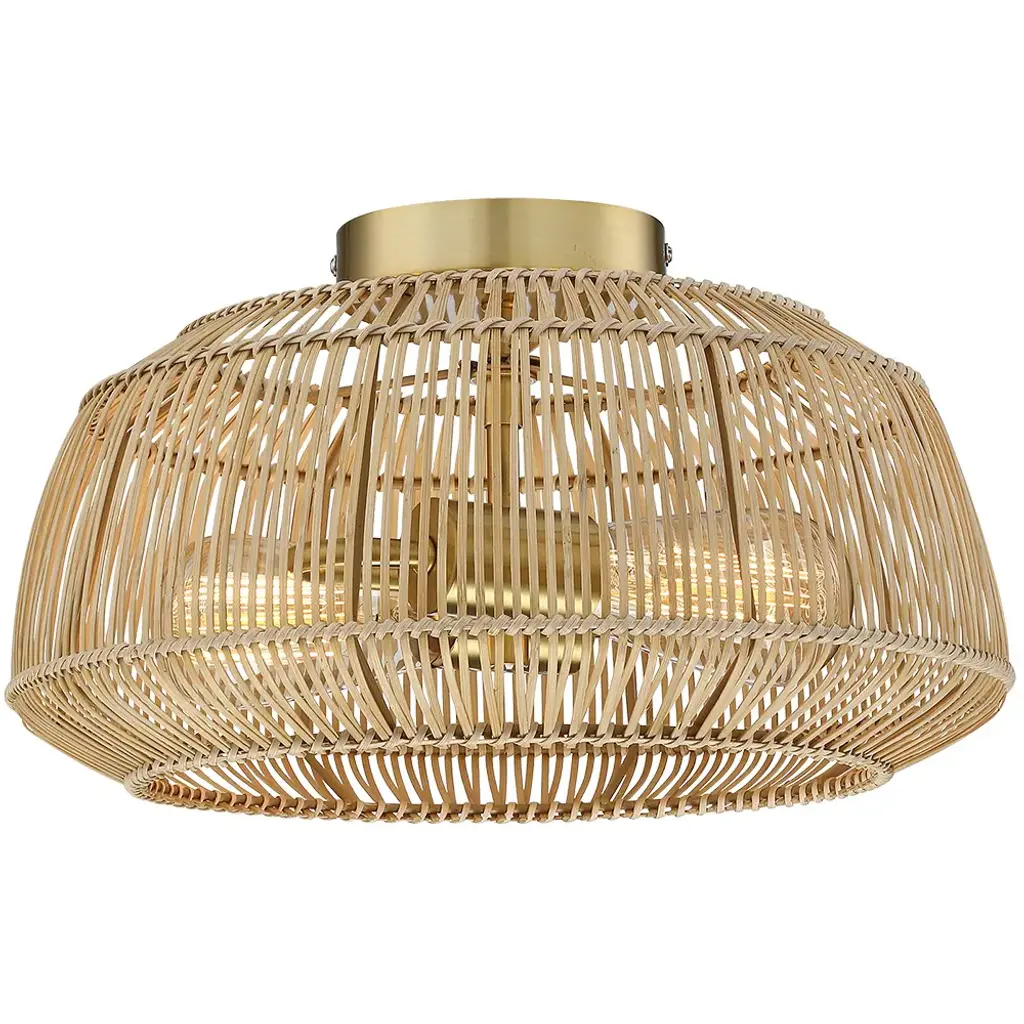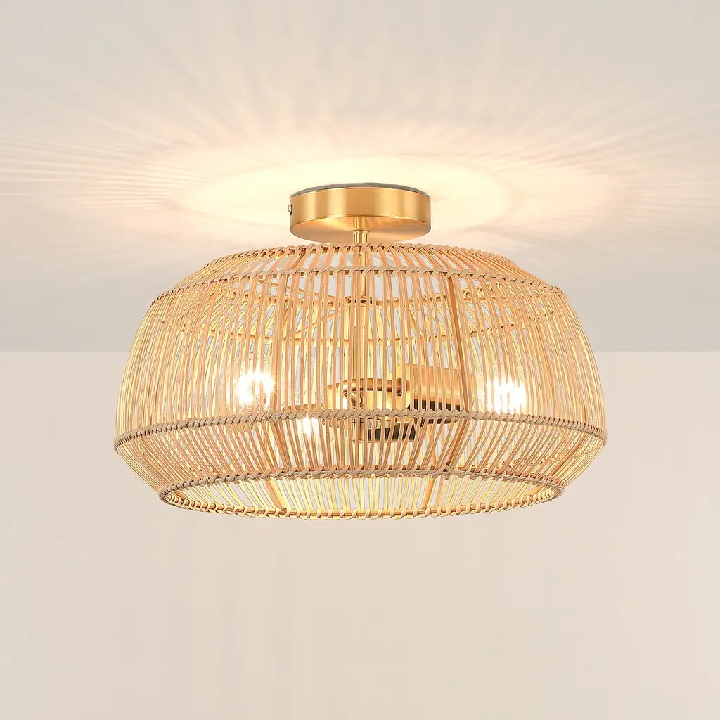 2-Light Bohemian Rattan Semi-Flush Mount Ceiling Light - Brass - 14"w-2 Lights