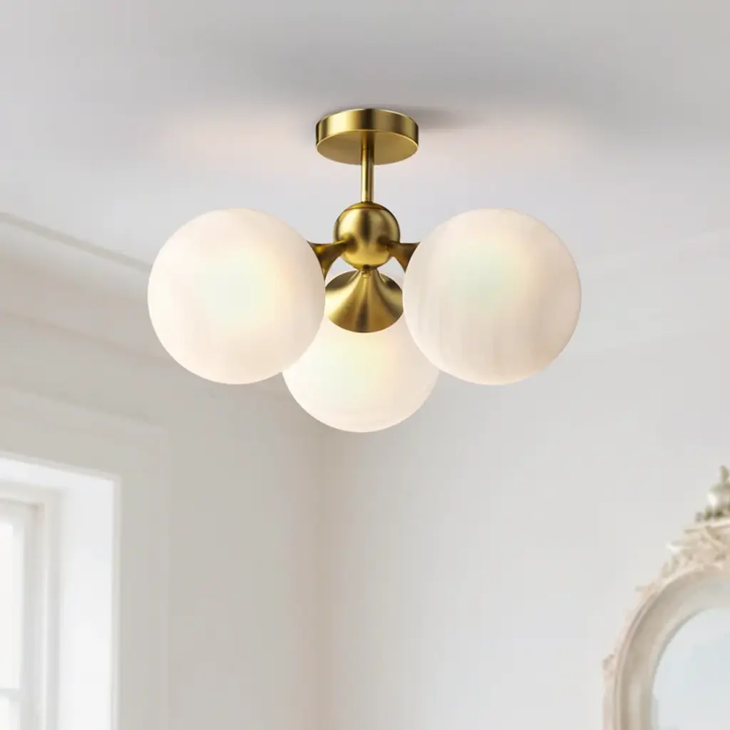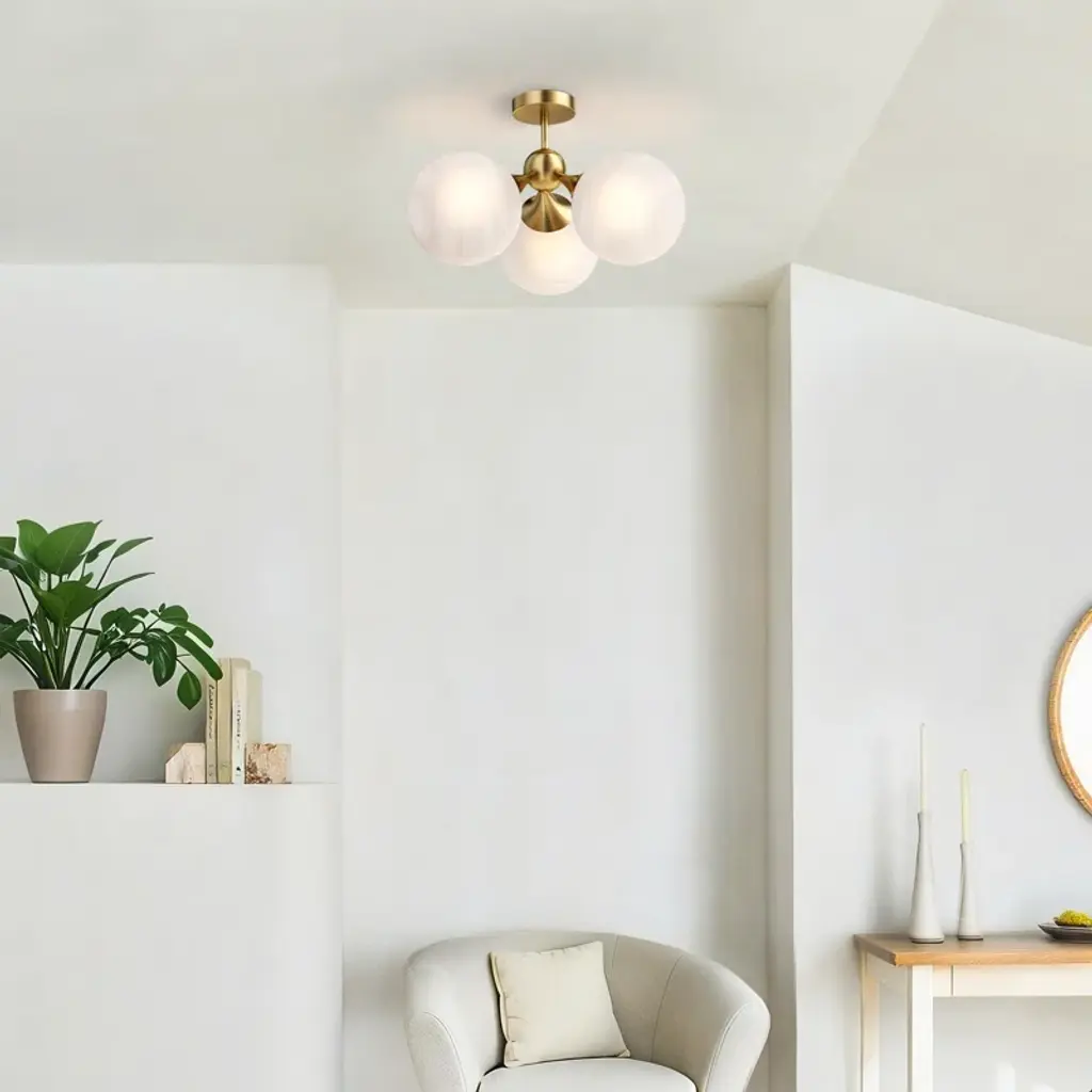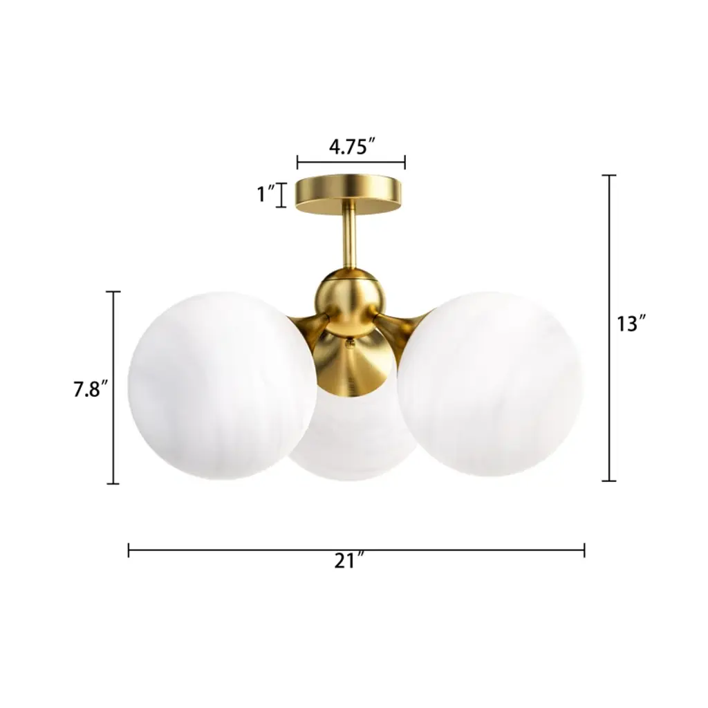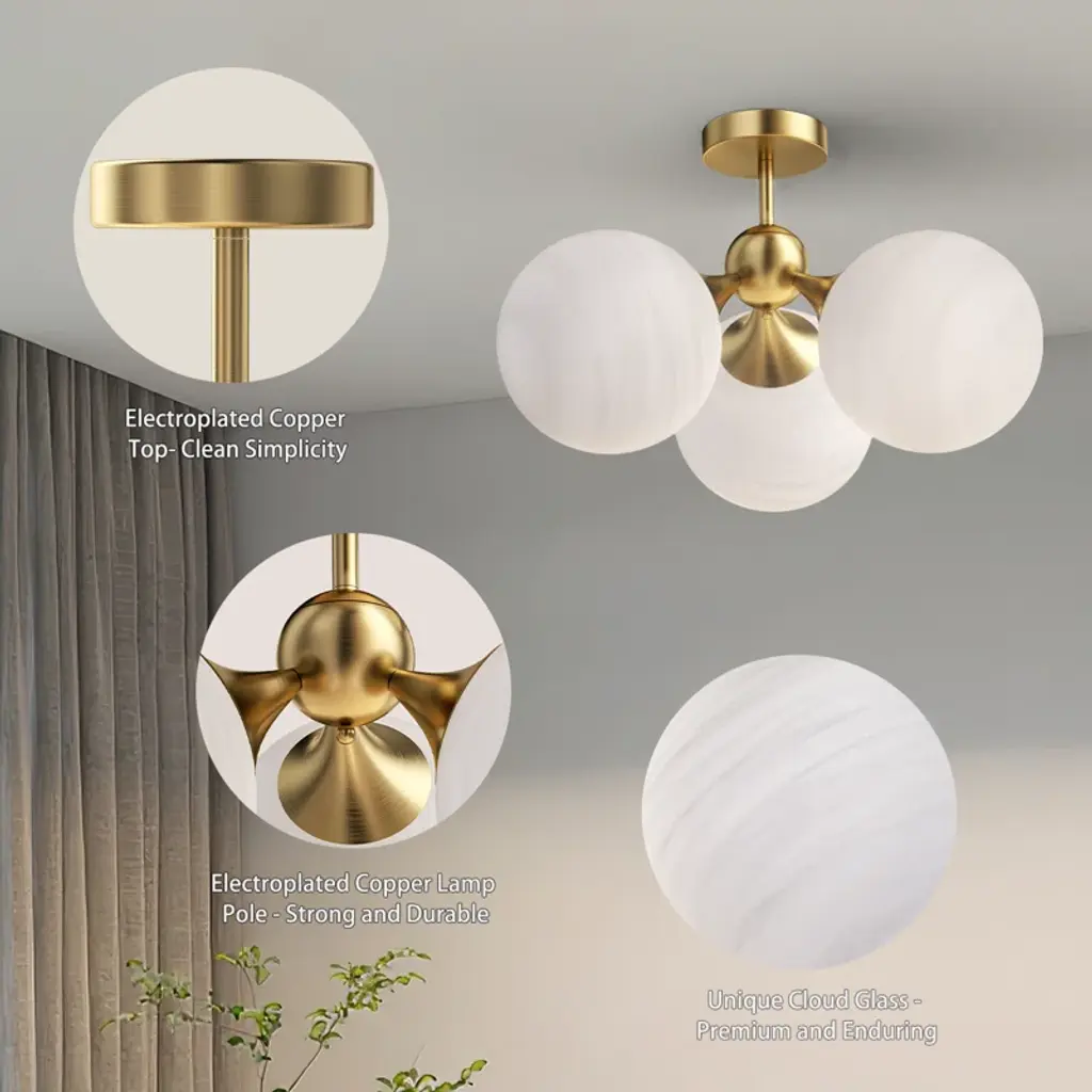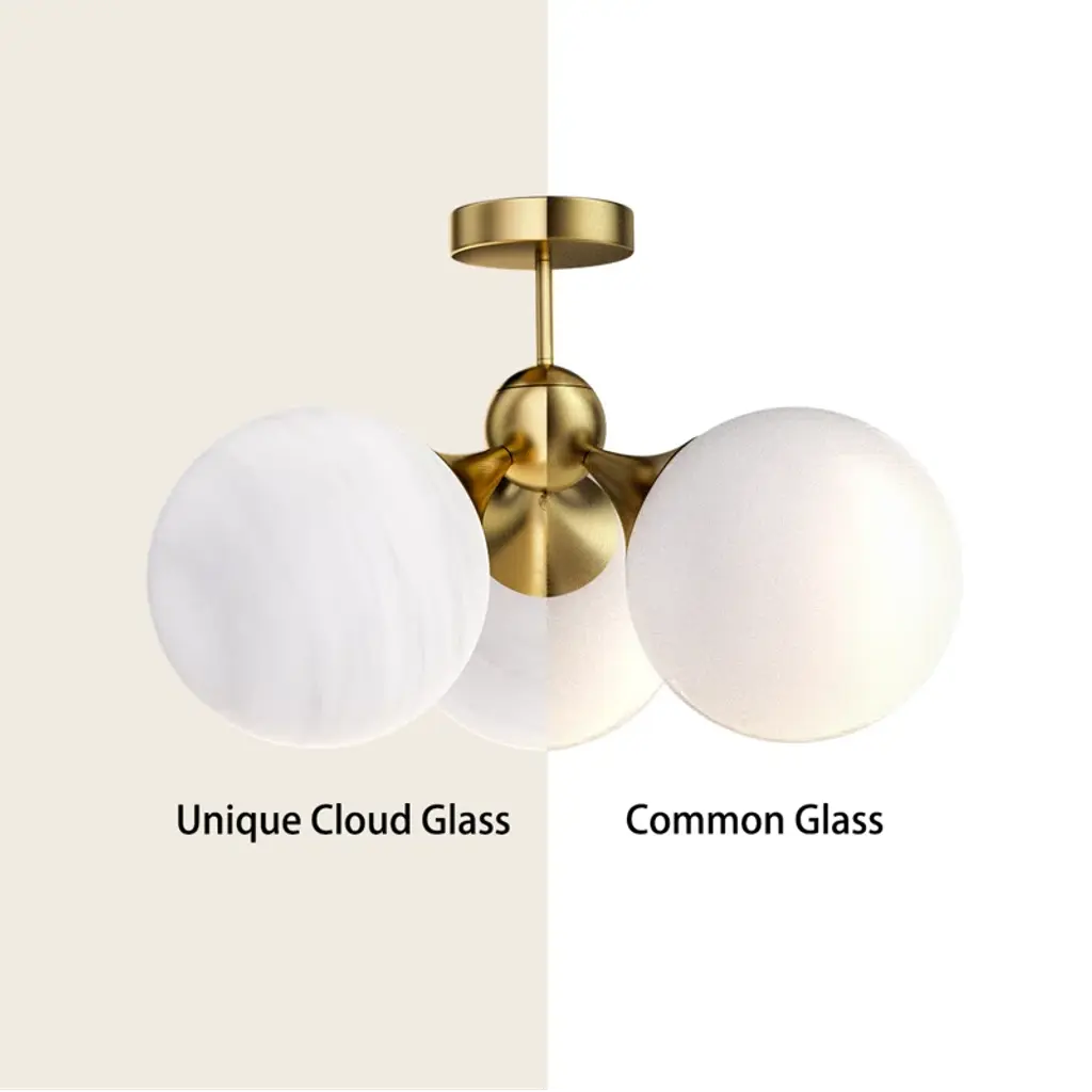 21"-3 Lights Modern Cloud Glass Globe Semi Flush Mount Lighting Fixture For Living Room, Bedroom