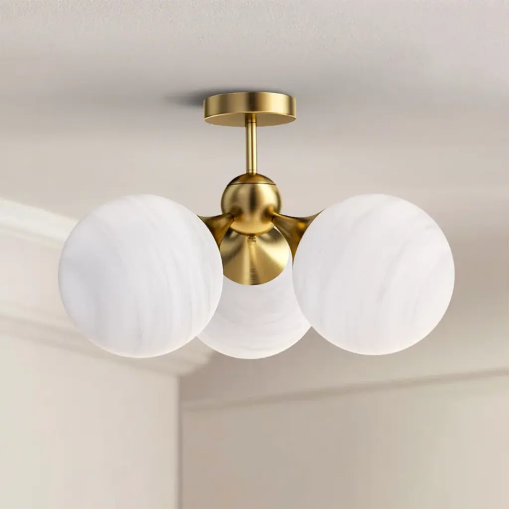 Brighten your home with the 3-Light Flush Mount Ceiling Fixture—where timeless design meets everyday functionality. This sleek fixture, crafted from durable iron and cloudy glass, adds a touch of refinement to living rooms and bedrooms alike. Choose from three versatile finishes (Antique Brass, Matte Black, Satin Nickel) to complement your decor, while its 3 E12 sockets cast a soft, diffused glow that balances warmth and brightness. ETL-certified for safety and built to last, it’s more than a light fixture—it’s a stylish staple that elevates your space effortlessly.