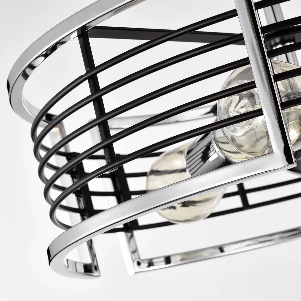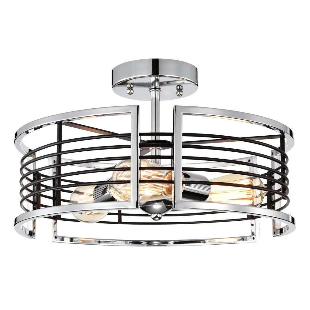 3-Light Chrome Semi-Flush Mount - Chrome And Textured Black